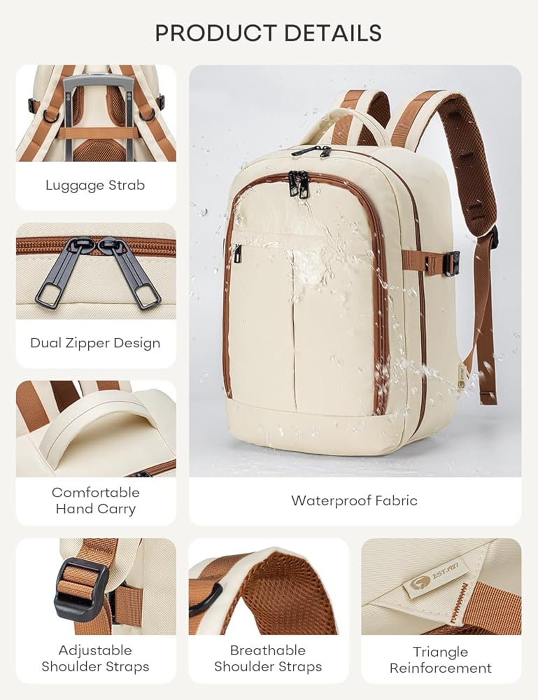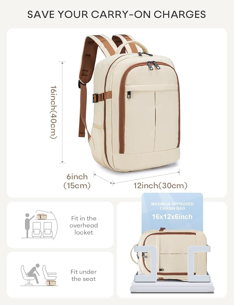 【حجم حقيبة الظهر الشخصية المعتمدة من شركة الطيران】تبلغ حقيبة ظهر السفر BAGZY هذه 16 × 12 × 6 بوصة (40 × 30 × 15 سم) وتلبي الحد الأقصى لقيود حجم العناصر الشخصية لمعظم شركات الطيران. يتناسب تصميمها المدمج بسهولة أسفل مقعد الطائرة أو في الصندوق العلوي، مما يجعلها مثالية لقضاء عطلة نهاية الأسبوع والرحلات القصيرة.