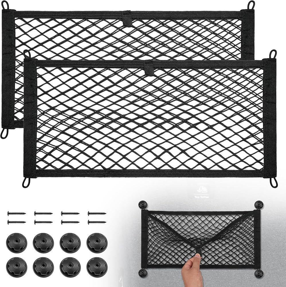 BUMBEE 2 قطعة شبكة مطاطية عالمية شبكة شحن شبكية، شبكة مغلف، منظم بنجي لحقيبة الجيب المرنة لصندوق السيارة الخلفي RV، خطافات ومسامير متضمنة (23.6 بوصة × 9.8 بوصة) in Kuwait