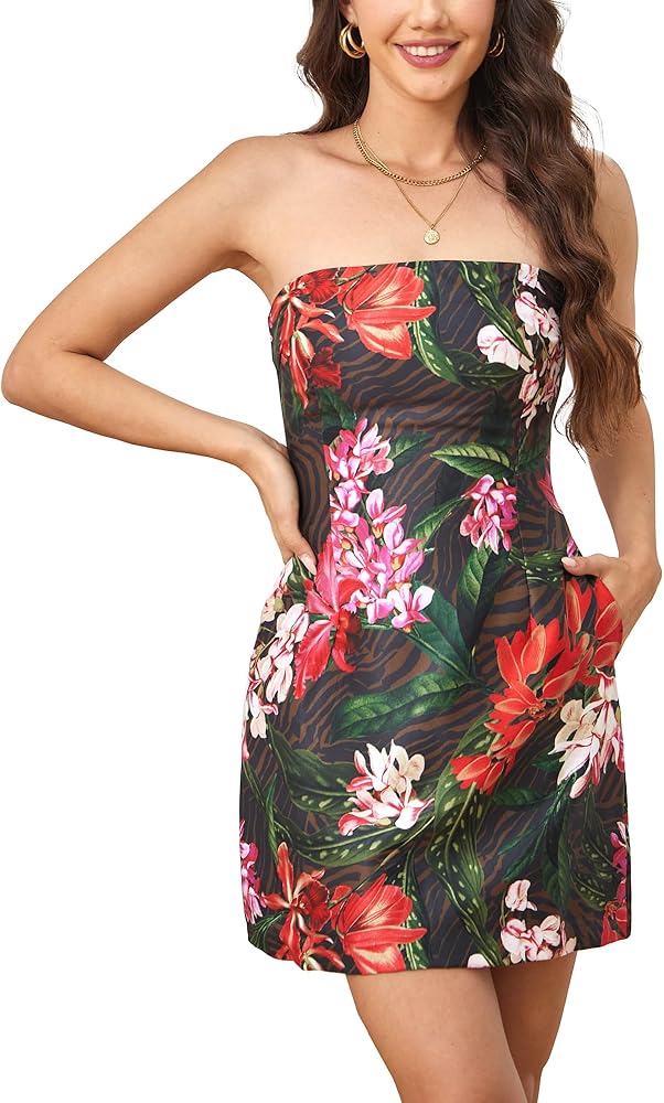 خامة فاخرة: فستان قصير أنبوبي مثير مع نسيج ناعم مسامي مزدوج الطبقات، مريح في الارتداء وغير شفاف. يضمن النسيج السميك المتانة ومقاومة التجاعيد، كما أن تصميم الطباعة الزهرية يجعله مثاليًا للارتداء اليومي.