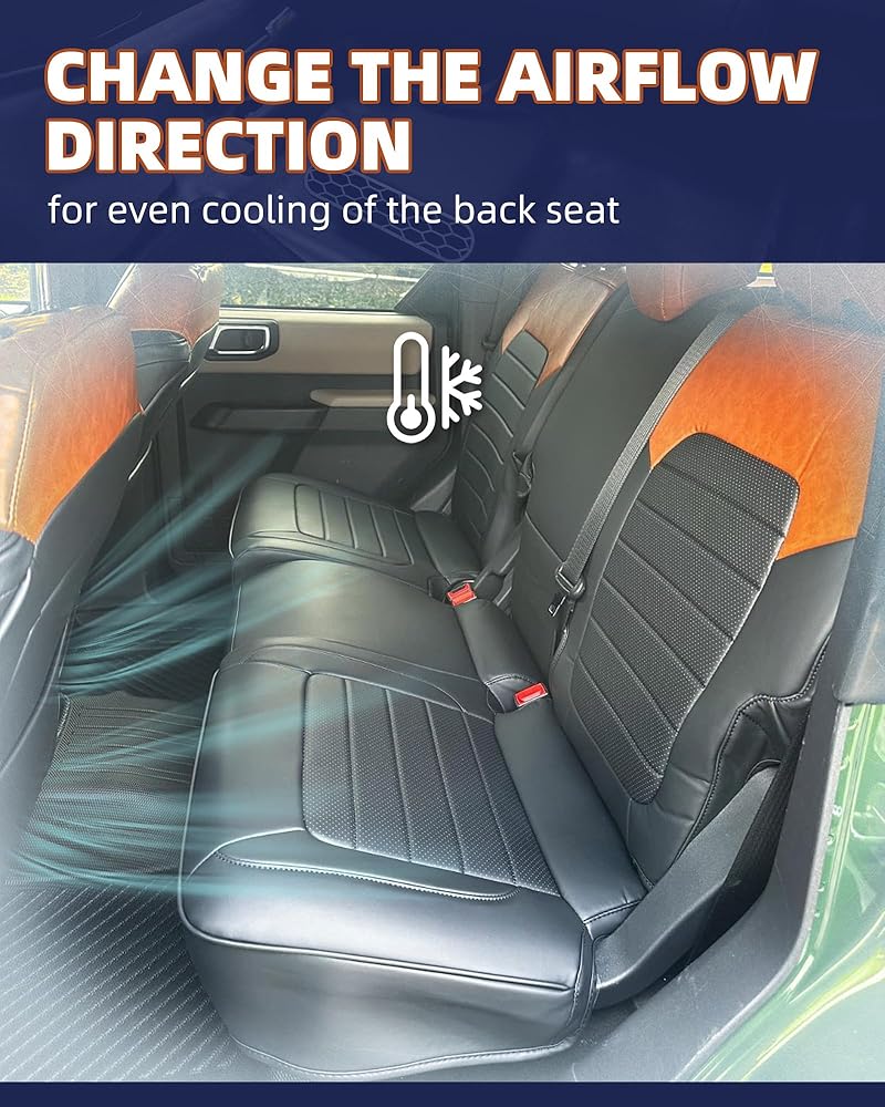راحة خلفية محسنة - تعمل عاكسات فتحات تهوية المقعد الخلفي على تحسين تدفق هواء المقعد الخلفي لركوب أكثر برودة في الصيف ورحلة أكثر راحة في الشتاء. رائعة للعائلات التي لديها أطفال أو حيوانات أليفة - لا مزيد من التيارات الباردة المباشرة تحت المقعد. إكسسوارات يجب اقتناؤها لعائلات برونكو