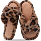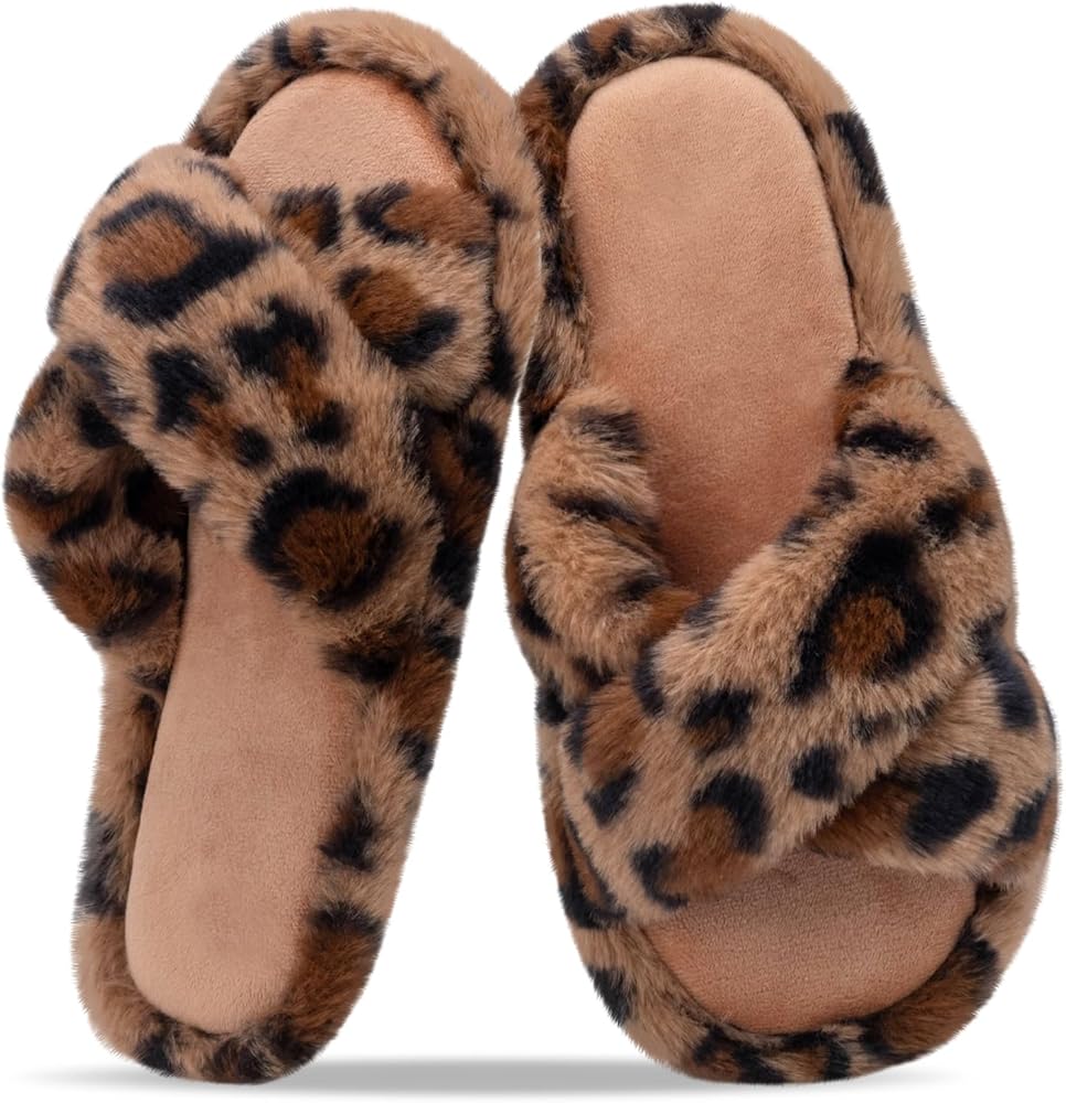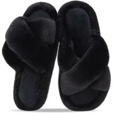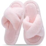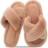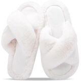 شباشب نسائية غامضة للنساء أحذية منزلية مريحة بشريط متقاطع صنادل مبطنة بالفرو الصناعي شرائح إسفنجية الذاكرة مفتوحة من الأمام سهلة الارتداء في الأماكن المغلقة in Kuwait