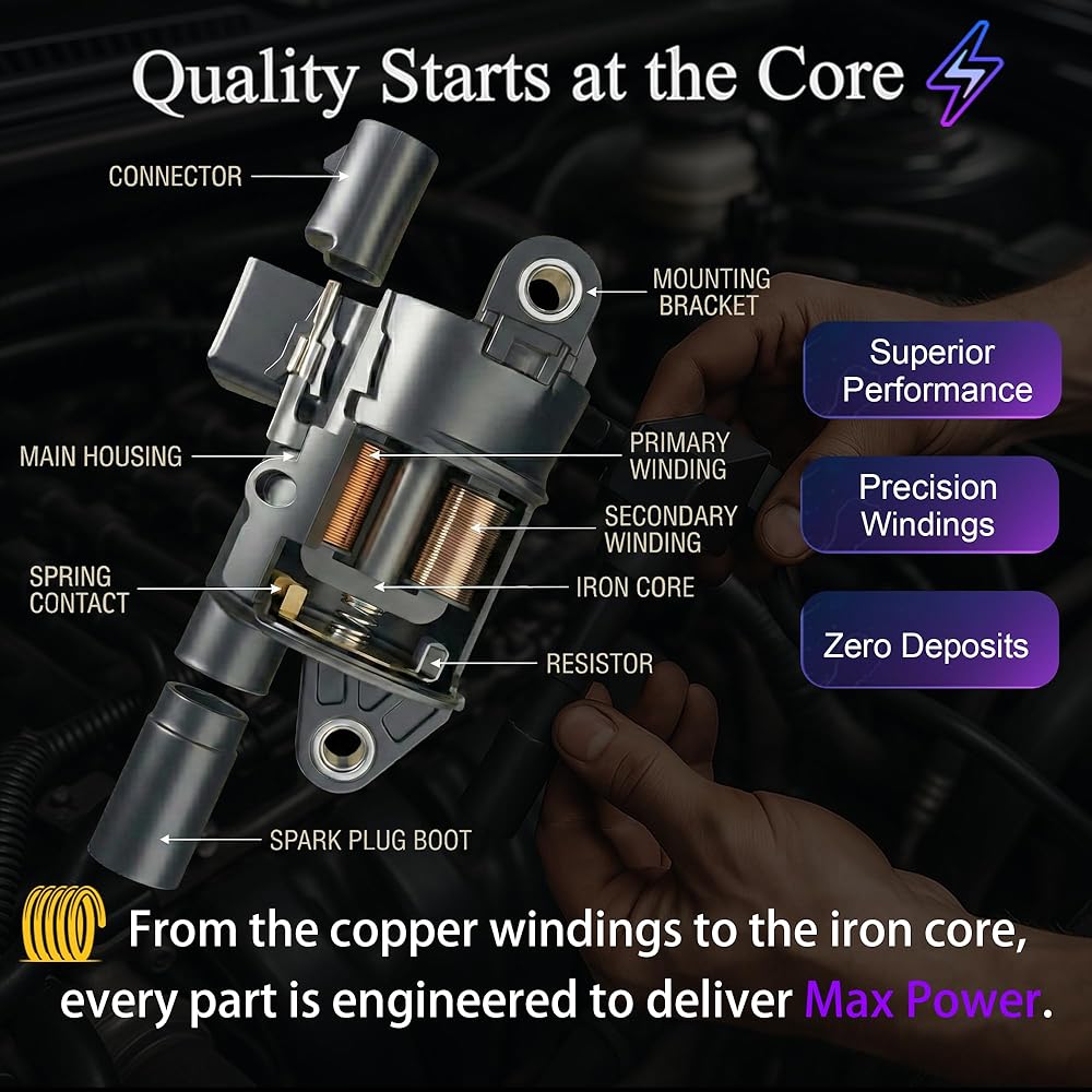 【يناسب تركيب السيارة-4】حزمة ملف الإشعال الدائري UF414 مناسبة لـ C adillac 2009-2016 CTS-V، 2006-2007 CTS-V، 2007-2016 Escalade/ESV، 2007-2012 Escalade EXT V8 6.0L/6.2L، 2008-2009 B uick ألور V8 5.3L، 2008-2009 بي يويك لاكروس V8 5.3L، 2005-2007 بي يويك رينييه V8 5.3L، 2005-2006 بونتياك جي تي أو، 2008-2009 بونتياك G8 6.0 لتر، 2005-2008 بونتياك جراند بريكس 5.3 لتر، 2009 بونتياك جي8 6.2 لتر.