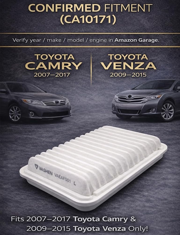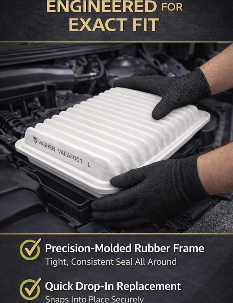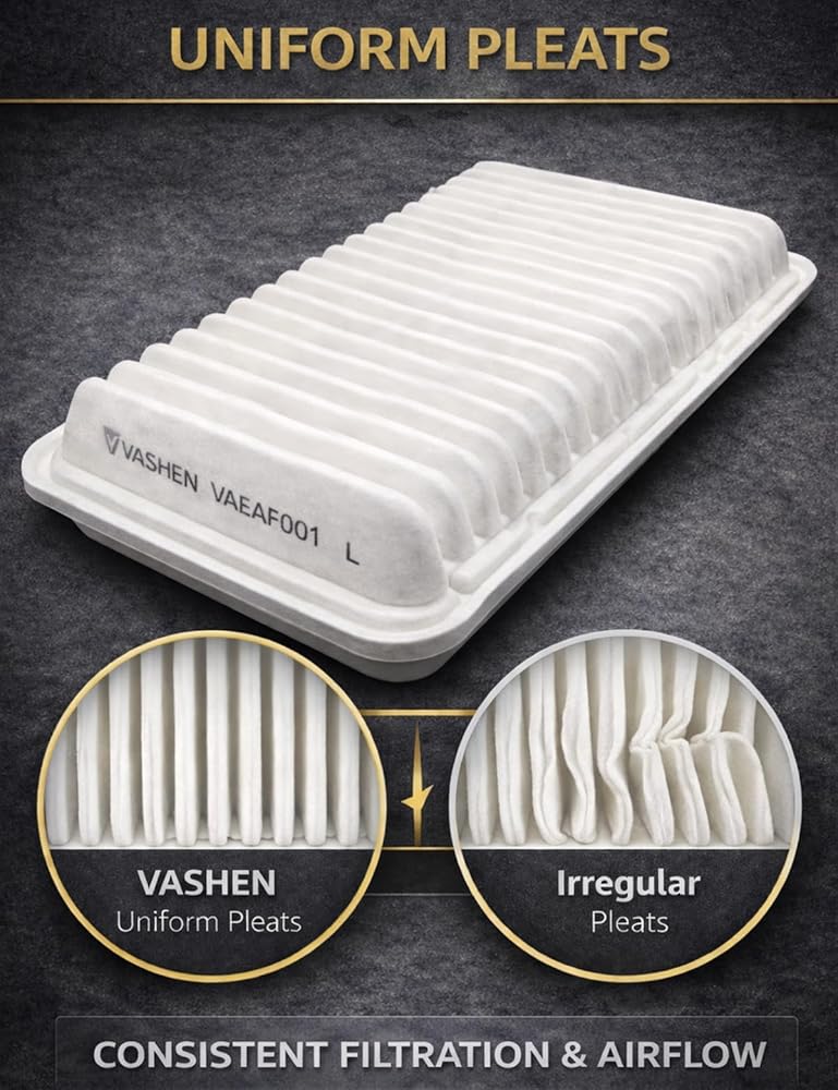 [Easy and Simple Installation] - Install the VASHEN engine air filter in minutes with a direct OE-fit design. Simply open the engine air filter housing, remove the old filter, insert the new one, and secure the cover for a tight, locked-in fit. Replaces# Fram: CA10171 | ACDelco: A3118C | Baldwin: PA4350 | Carquest: 83223 | Champ / CHAMP Filters: AF4017 | Champion: CAP10171 | Casite Filters: CFA1308 | Defense Filters: DA10171 | DENSO: 143-3018 | EcoGuard: XA5649 | FVP: P9223 | Group 7: VA5649 | Hastings: AF1308 | K&N: 33-2370 | Luber-Finer: AF4017 | MAHLE: LX3565 | MANN-HUMMEL: C30009 | MicroGard: MGA10171 | Mileguard: MA10171.