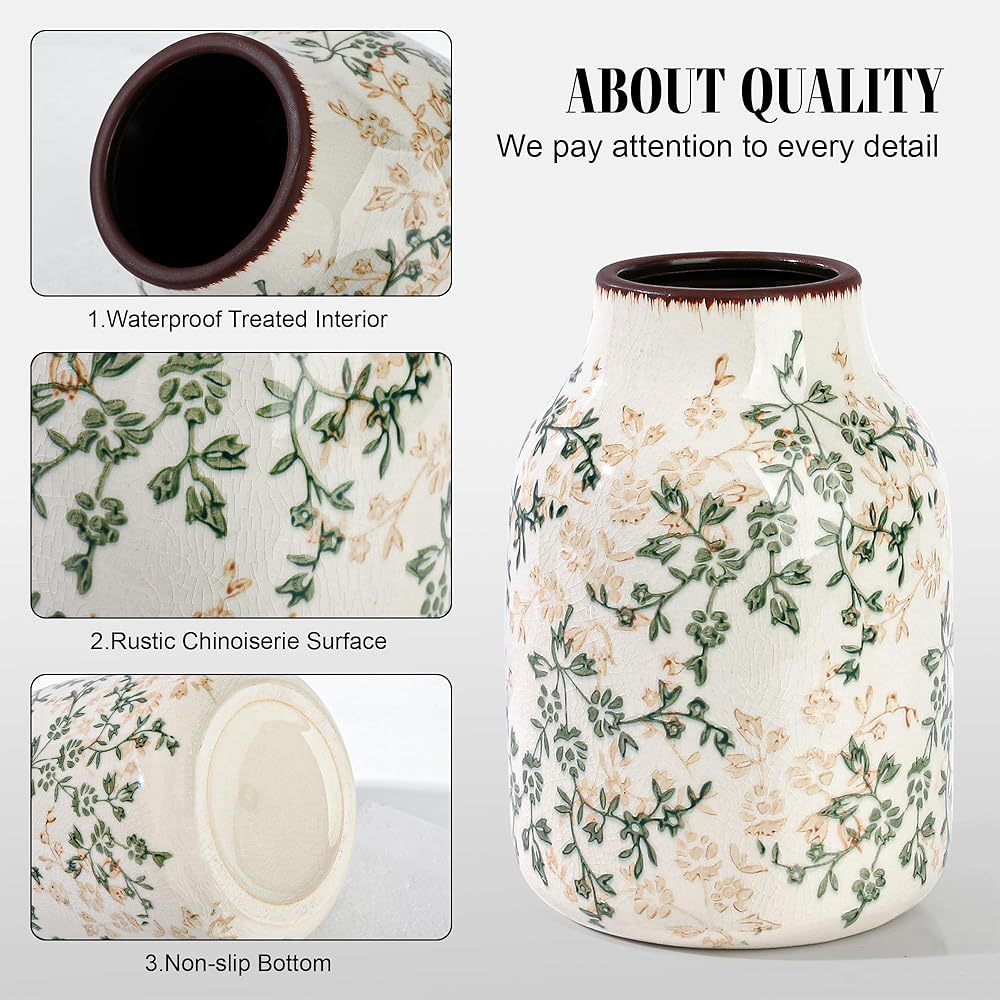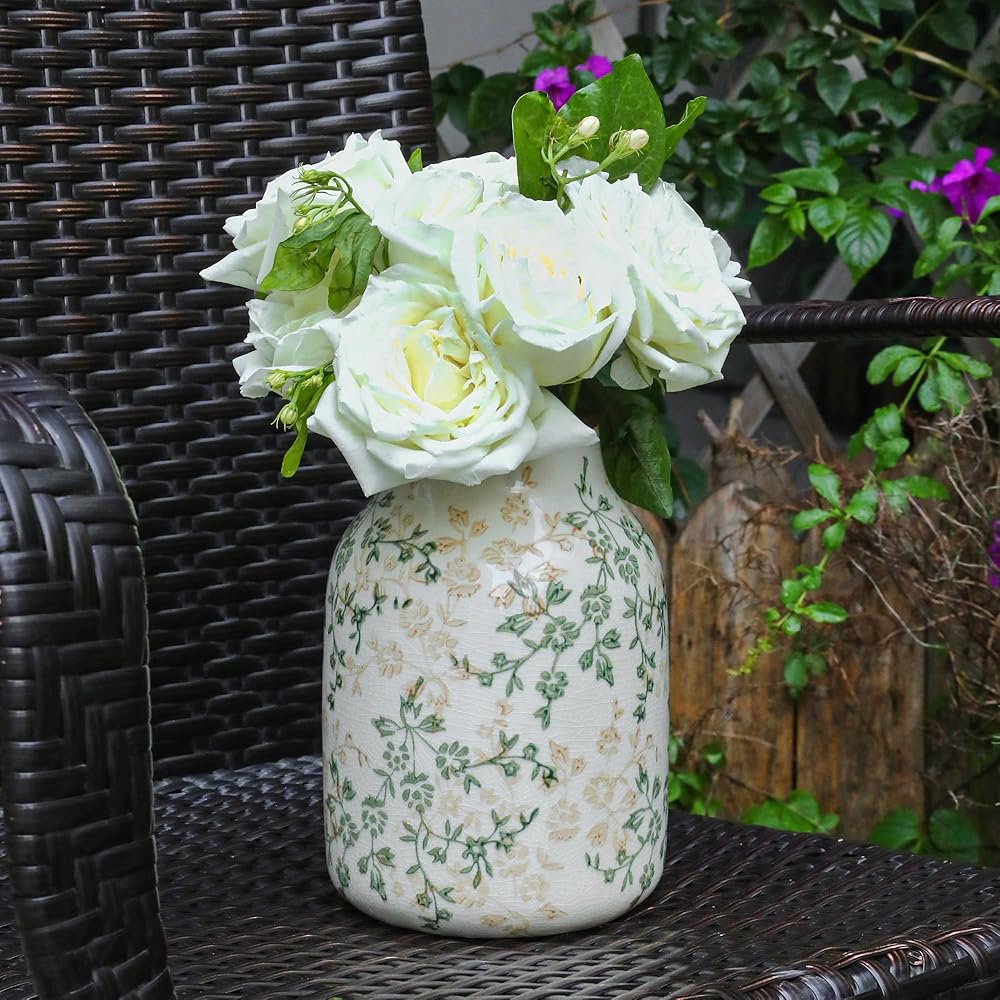• سيراميك عالي الجودة: هذه المزهرية العتيقة المصنوعة من السيراميك عالي الجودة المتين ويدوم طويلاً، مزهرية السيراميك ليست مثالية فقط لترتيب الزهور، ولكنها يمكن أيضًا أن تكون بمفردها كديكور مذهل.