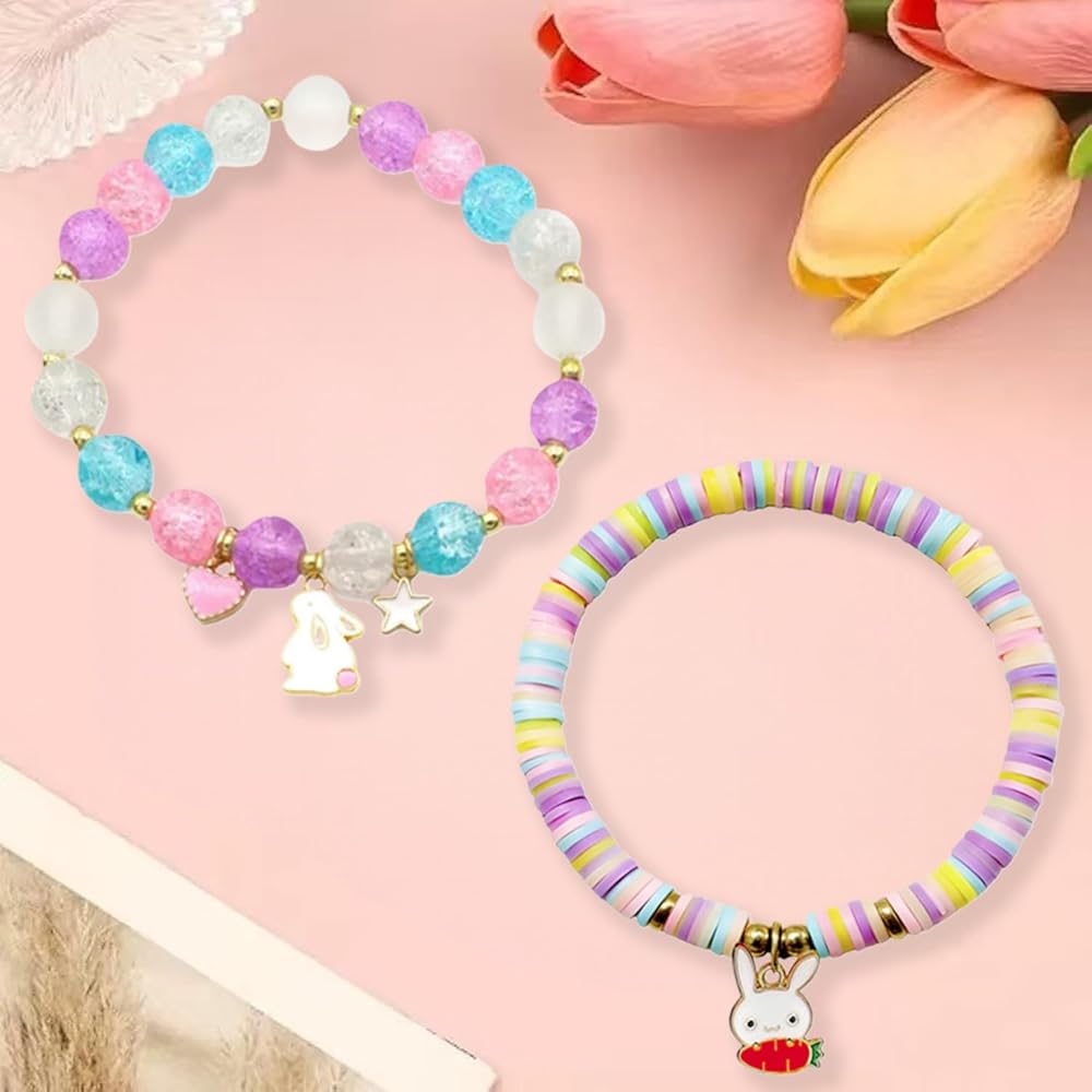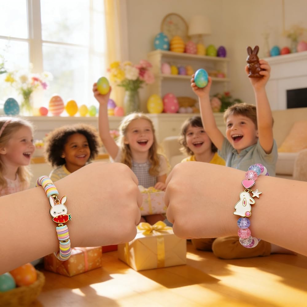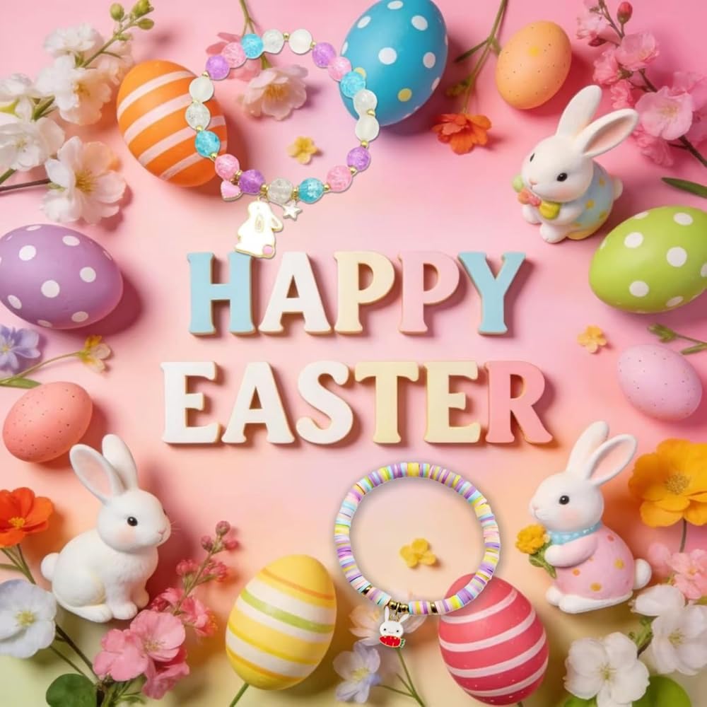 • 2 Pcs Easter Themed Bracelet Set: This set features 1 bunny charm beaded bracelet and 1 polymer clay easter bracelets. All pieces come with stretchy elastic bands for a one-size-fits-all fit that suits adults.