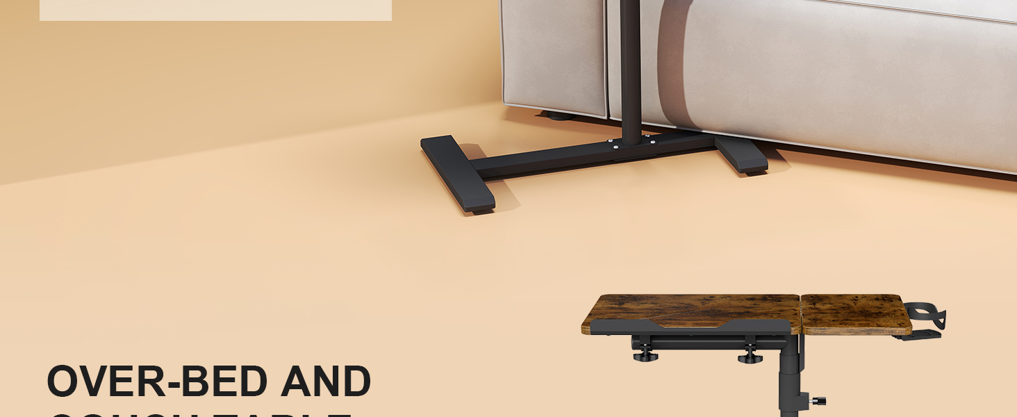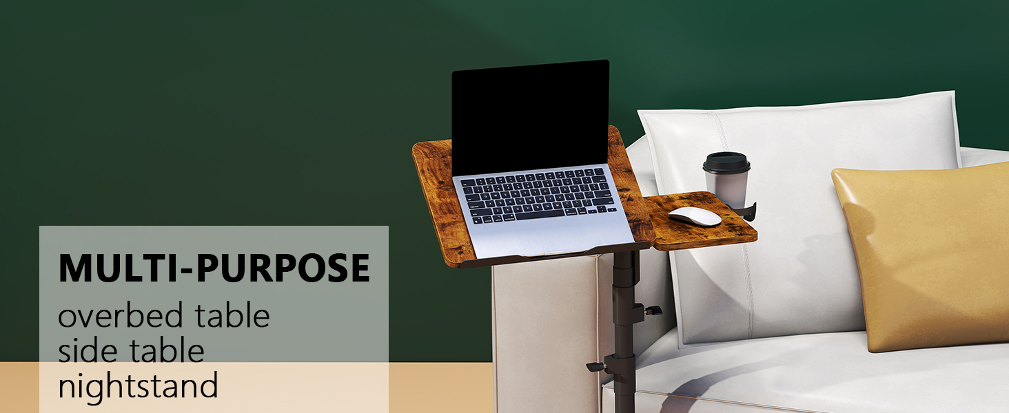 طاولة دوارة لحامل الكمبيوتر المحمول، ارتفاع وزاوية قابلة للتعديل فوق طاولة السرير مع عجلات، مكتب كمبيوتر محمول قابل للإمالة للأريكة مع حامل أكواب، صينية طاولة السرير لتناول الطعام (ريفي)
