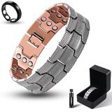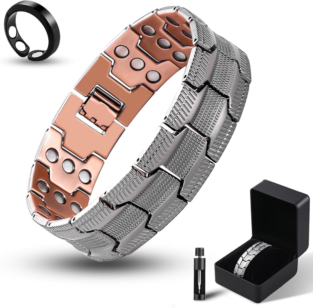 【Premium Solid Copper Build】Made of 99.99% nickel-free copper, this mens copper magnetic bracelet combines durability with classic aesthetics. The reinforced Wheel-Tread links resist bending while maintaining comfort. Includes matching copper ring.