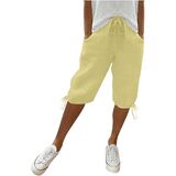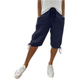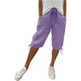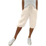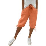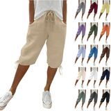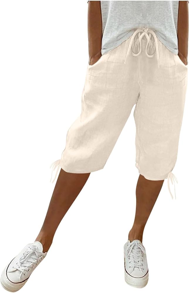 Bermuda Shorts for Women Knee Length Cotton Linen Shorts Casual Summer Pedal Pushers with Pockets