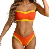 مجموعات بيكيني للنساء قطعتين ملابس سباحة عالية القطع بأشرطة سباغيتي قابلة للتعديل كتلة ألوان بدلة استحمام للنساء in Kuwait