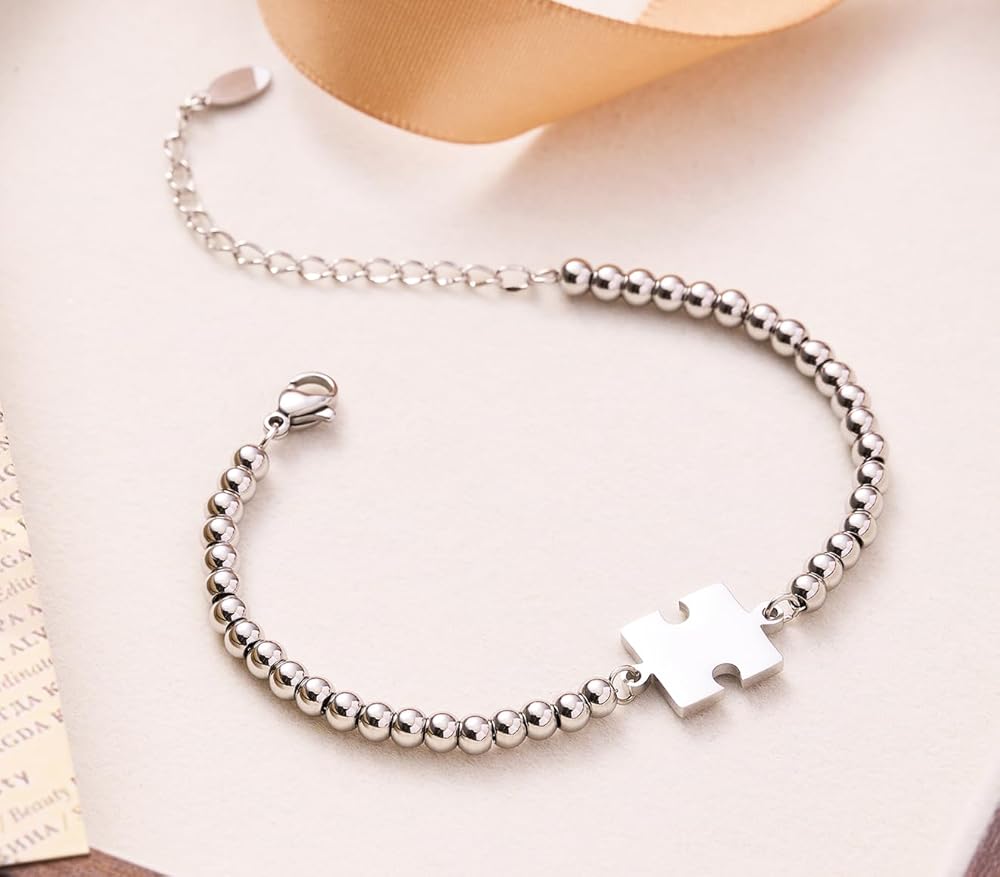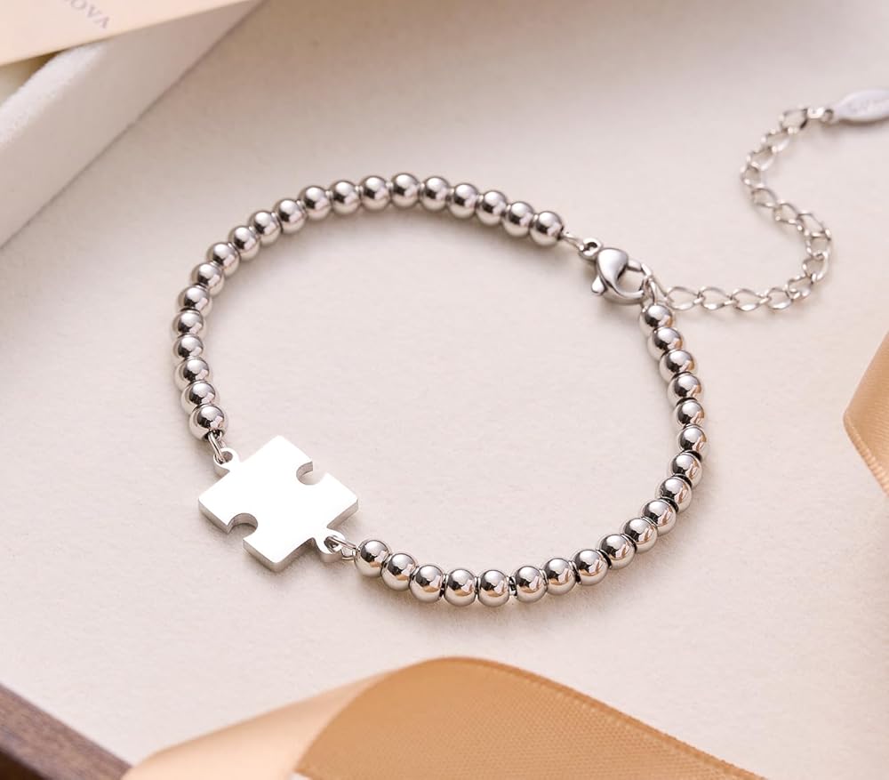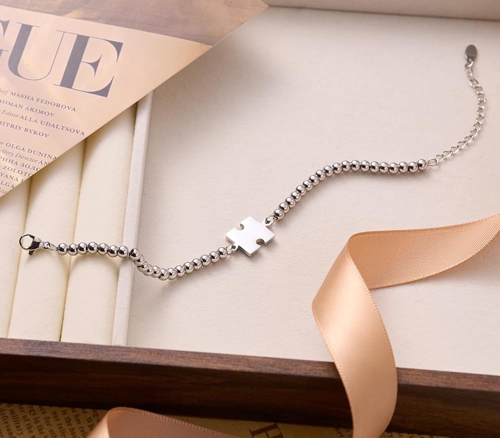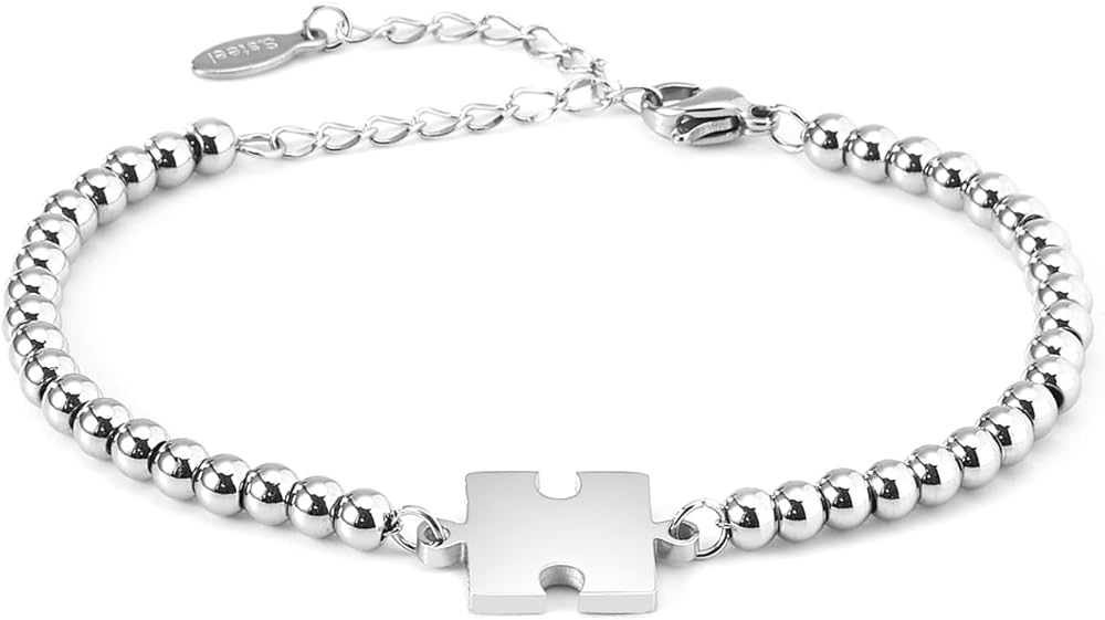 • The bracelet is made of high quality stainless steel with sparkling silver beads and puzzle piece. It is very comfortable to wear, not easy to fade.