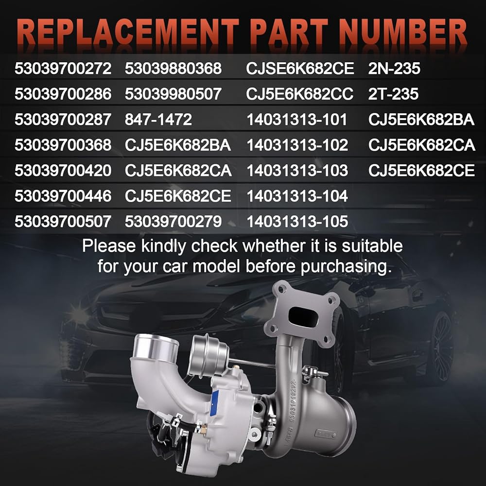 الوظيفة: يؤدي استبدال هذا الشاحن التوربيني إلى معالجة الأعراض المباشرة للفشل مثل الدخان الأزرق أو الأبيض الزائد من العادم، أو الأنين العالي أو أصوات صفارات الإنذار من حجرة المحرك، أو فقدان كبير لقوة المحرك أو زيادة استهلاك الزيت