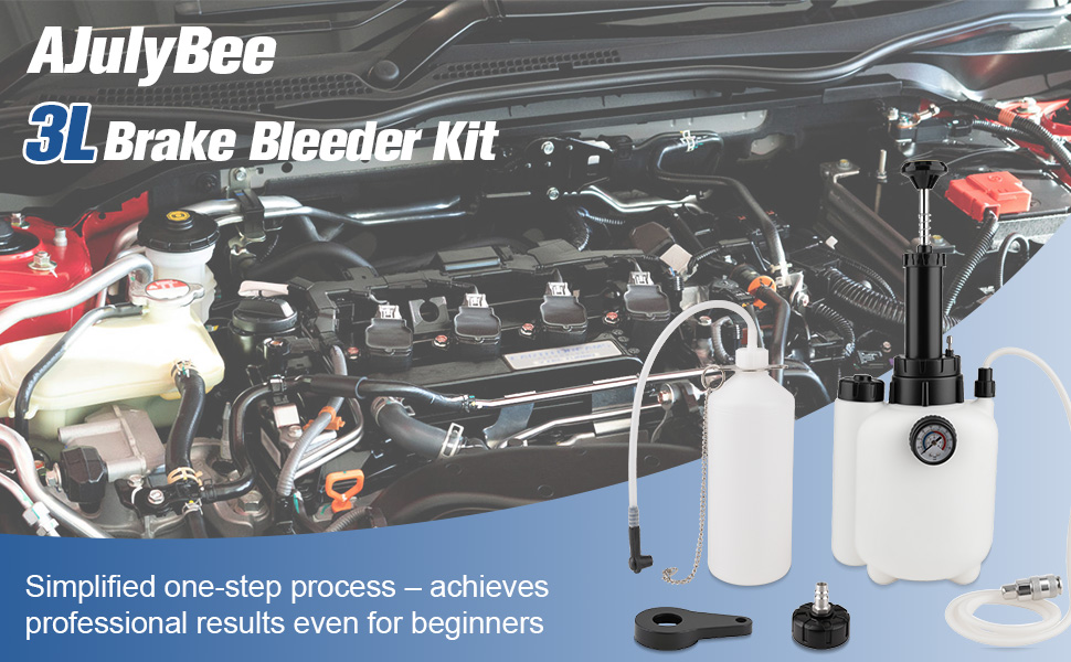 【تشغيل سهل】تتميز مجموعة نزيف الفرامل AJulyBee بتصميم عملي لشخص واحد. تأتي زجاجة تجميع الزيت بسعة 1 لتر مع سلسلة محمولة لسهولة ربطها بالمركبات، مما يجعل عملية التشغيل أكثر كفاءة وملاءمة. تعمل بسهولة باستخدام الدليل المرفق.