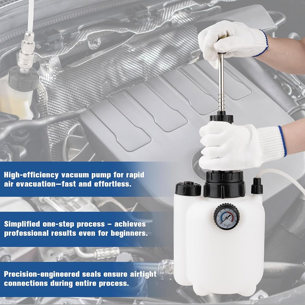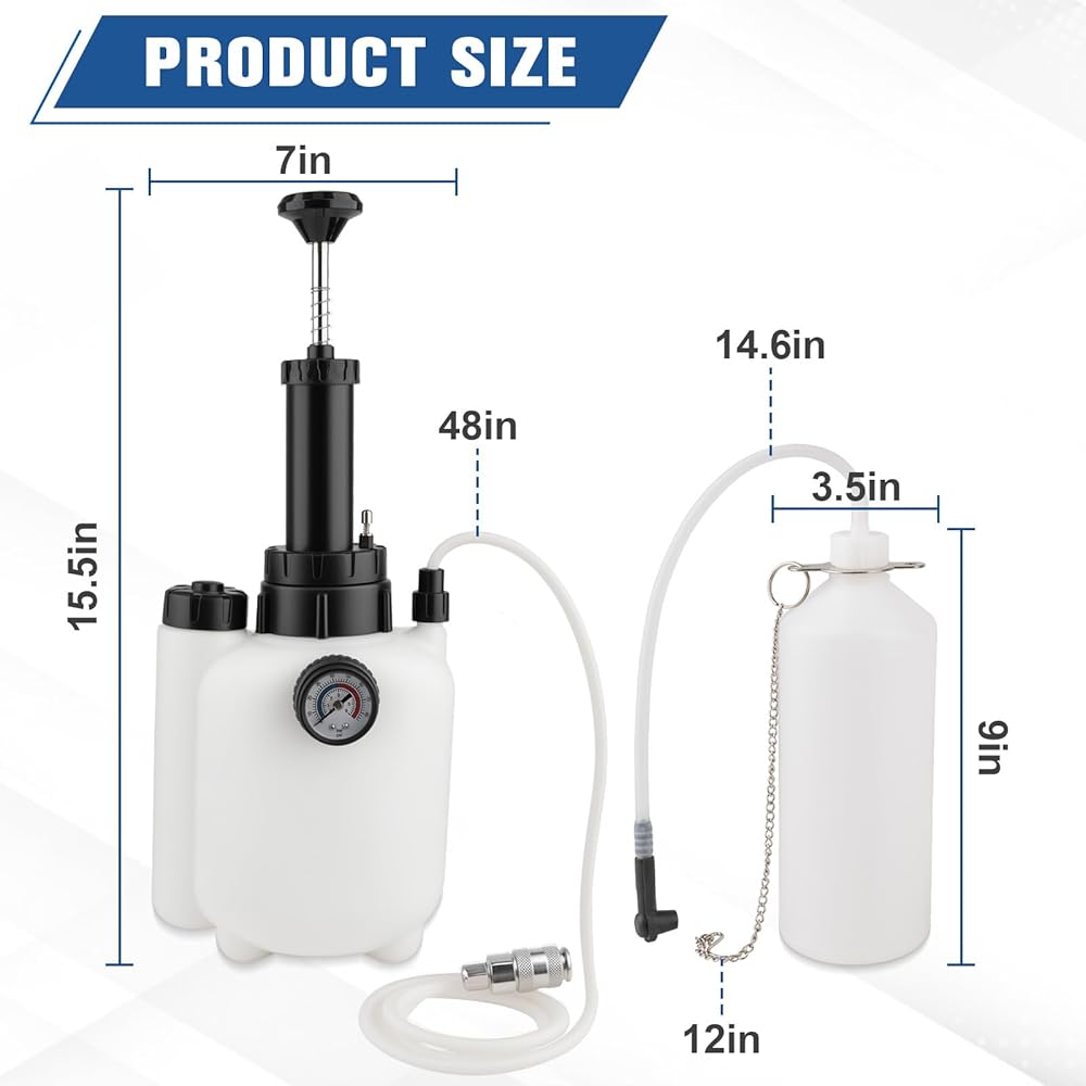【استخدام واسع】مناسب لمعظم موديلات المركبات (السيارات وسيارات الدفع الرباعي والشاحنات) لكل من الجراجات المنزلية وورش العمل الاحترافية. يمكن لمجموعة أدوات نزيف الفرامل هذه إكمال تغيير سائل الفرامل للسيارة بأكملها في جلسة واحدة دون الحاجة إلى إعادة تعبئة في منتصف العملية.