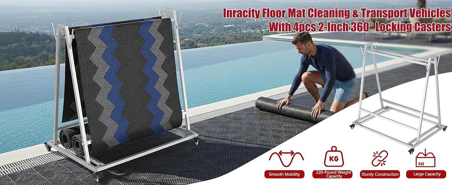 • رفوف غسيل وتخزين متعددة الأغراض: أبعاد واسعة لعربة نقل السجادة الأرضية تبلغ 42 بوصة × 28 بوصة × 40 بوصة تستوعب الحصائر المختلفة بما في ذلك الحصير المطاطي، وحصائر أرضية السيارة، وحصيرة اليوجا، وحصائر الحمام، وحصائر أرضية المطبخ، والحصائر الموحلة للكلاب، والمزيد