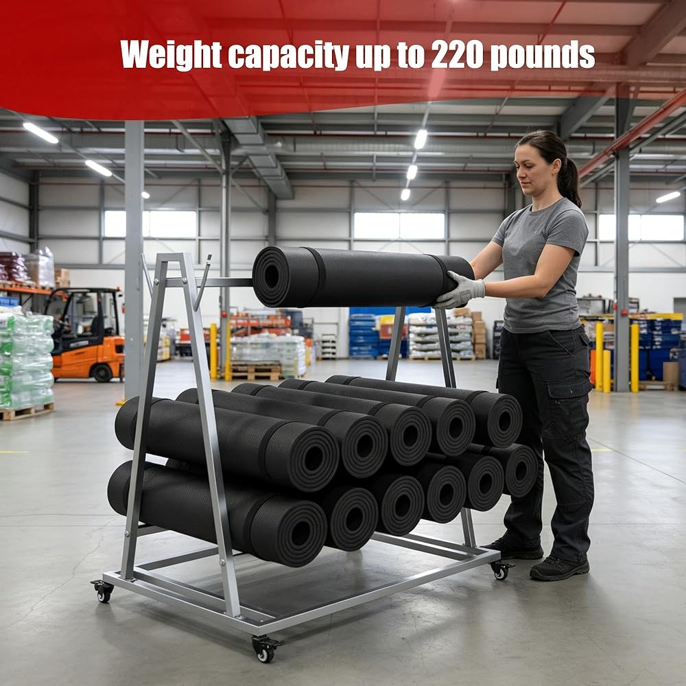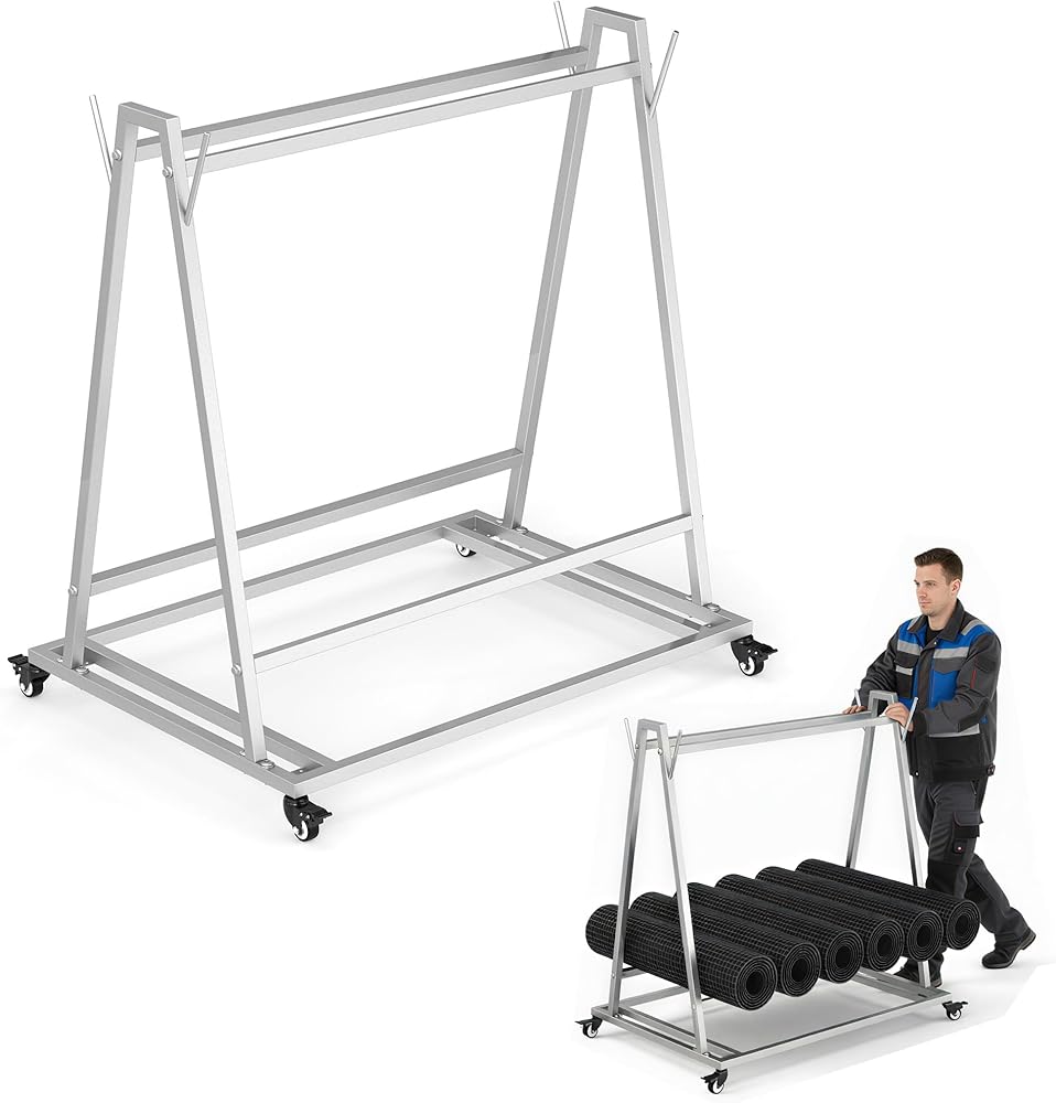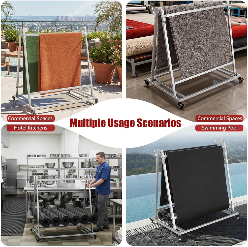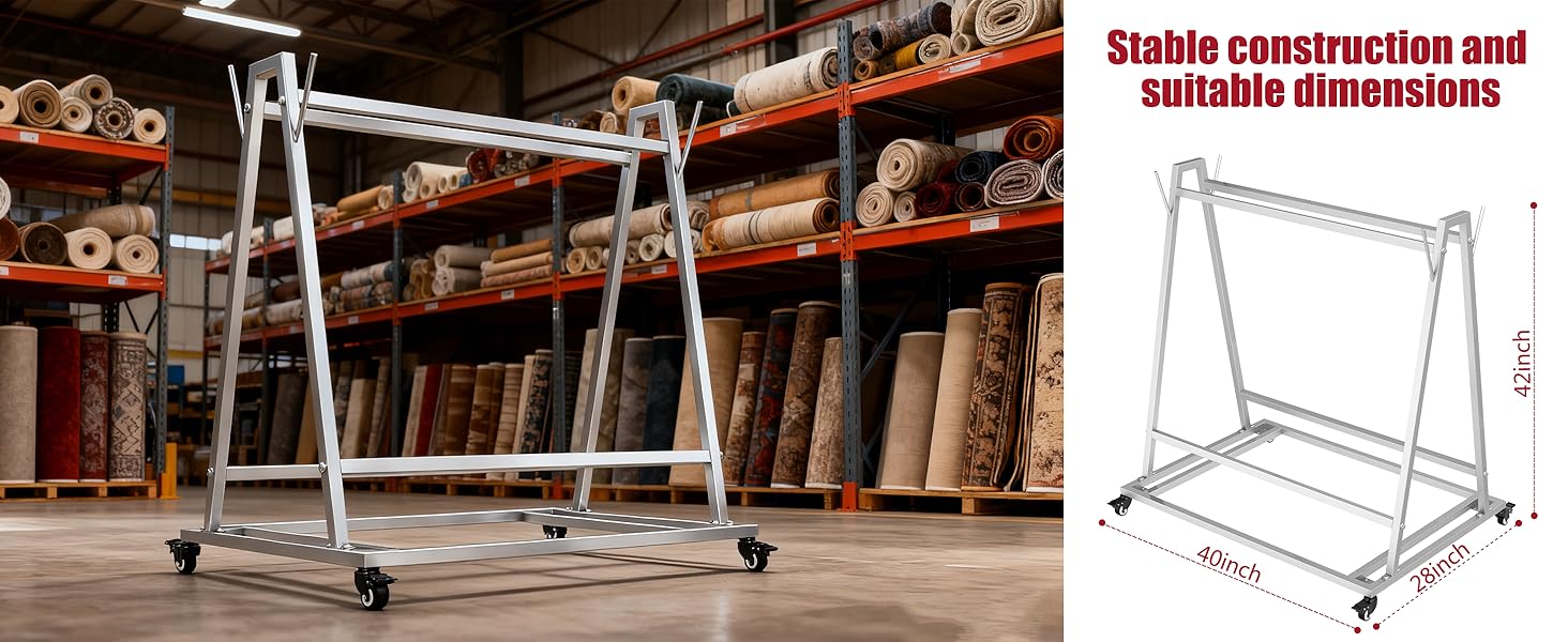 • تصميم عربة متنقلة ذات نمط مفتوح: رف تخزين سجادات الأرضية مصنوع من الفولاذ الفضي بسمك جيد من أجل المتانة والقوة. السطح المجلفن يقاوم الصدأ والخدوش. يدعم حوالي 300 رطل، ويلبي احتياجات النقل والغسيل والتخزين اليومية