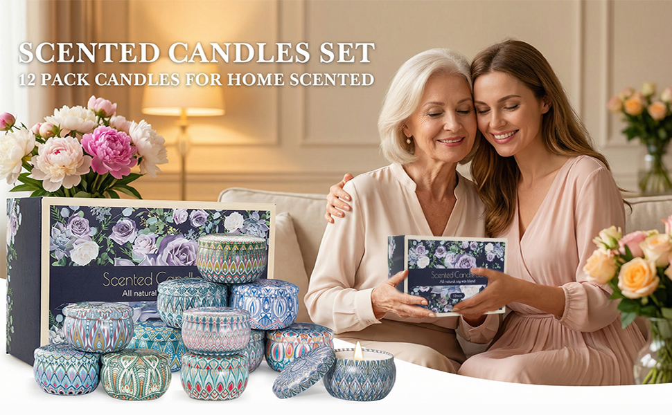 هدايا الشموع للنساء - مجموعة هدايا الشموع تتضمن 12 عبوة من الشموع اللطيفة وعبوة صندوق هدايا. أرسل هذه الشموع لها إلى والدتك كهدية عيد ميلاد الأم، أو الزوجة في عيد الميلاد، أو عيد الشكر، أو عيد الحب، أو أي ذكرى سنوية.