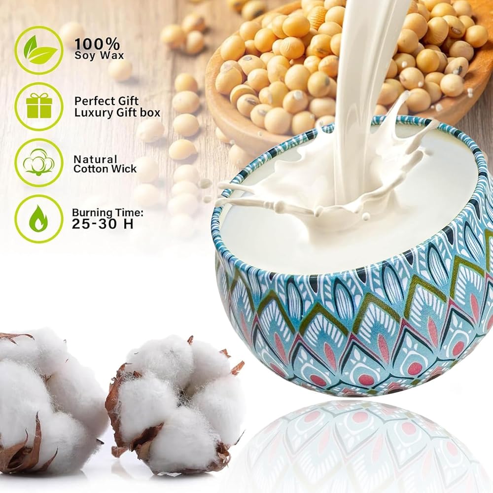 شمع الصويا الطبيعي - شموع معطرة بشمع الصويا الطبيعي 100%. الفتيل مصنوع من القطن الخالي من الرصاص. الشموع غير سامة وصديقة للبيئة. جميع العطور مشتقة من الزيوت العطرية النباتية النقية. هذه الشموع آمنة للنساء الحوامل والعائلات والأطفال