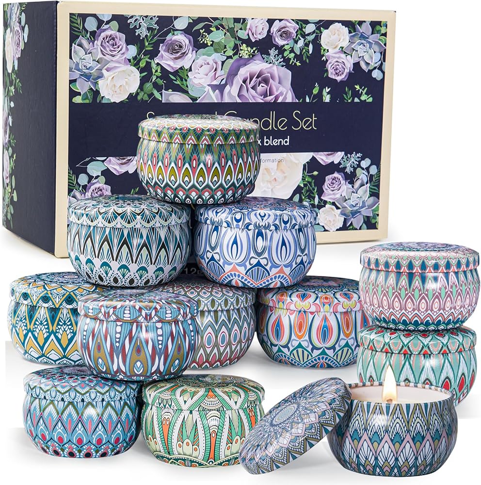 مجموعة هدايا الشموع المعطرة، 12 عبوة من الشموع العطرية للنساء، شموع معطرة للمنزل، احتراق طويل 300 ساعة، مجموعة شموع شمع الصويا، هدايا للأمهات والنساء في المنتجعات الصحية ومستلزمات تخزين الذكرى السنوية لأعياد الميلاد