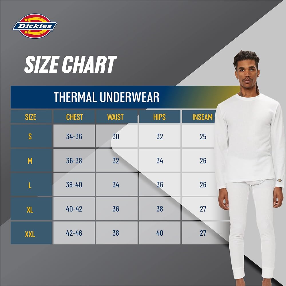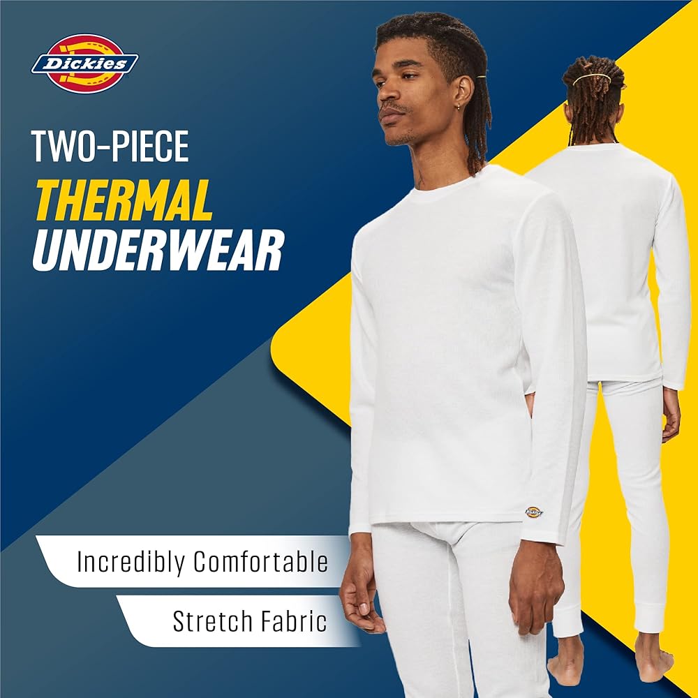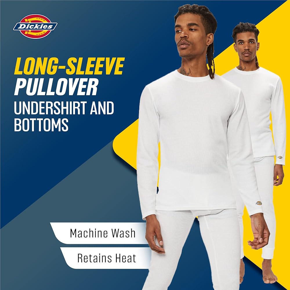 قميص داخلي وجزء سفلي منسوج بأكمام طويلة للرجال. يُغسل في الغسالة ويُجفف بالمجفف لسهولة العناية والصيانة - مثالي للتزلج على الجليد والتزلج والعديد من أنشطة الطقس البارد الأخرى. ضمان الرضا بنسبة 100%. تأتي منتجات Dickies الحرارية للطقس البارد الشديد بمقاسات صغيرة ومتوسطة وكبيرة وكبيرة جدًا و2XL.