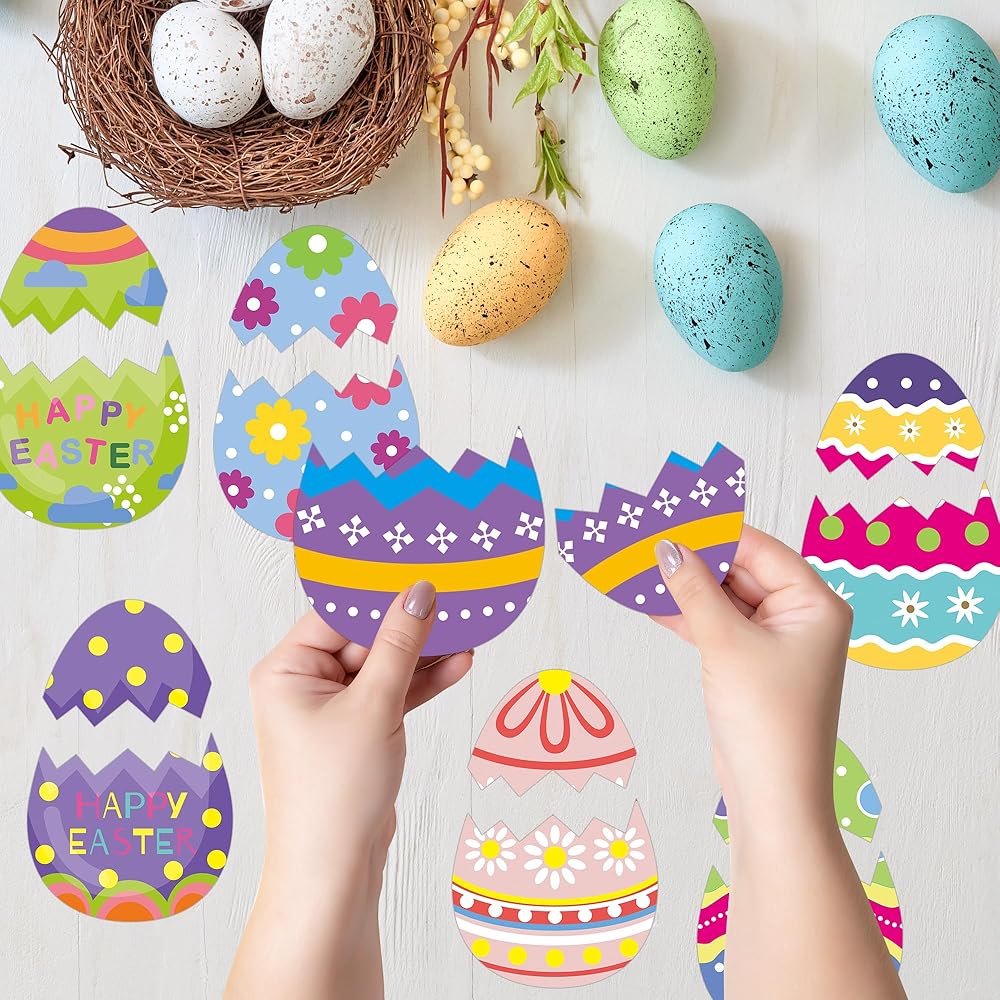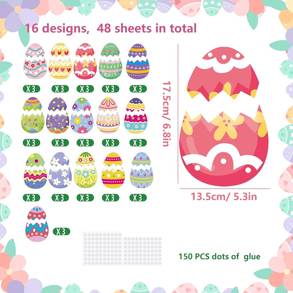 Package Includes: This set contains 48 Easter egg cutouts, each including an egg base and a top, along with 150 strong glue points. This complete set makes holiday decorating effortless