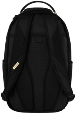 This backpack is crafted from 100% Polyester, measuring 18" x 6" x 11.5". It features a front zipper pocket, side pockets, and a zippered stash pocket. A separate velour sunglass compartment and ergonomic mesh back padding ensure comfort. The adjustable straps allow for custom sizing, while gold zippers with metal hardware and a metal 'Sprayground Authentic' badge add durability. A slide-through back sleeve enables connection to carry-on luggage for hands-free travel.