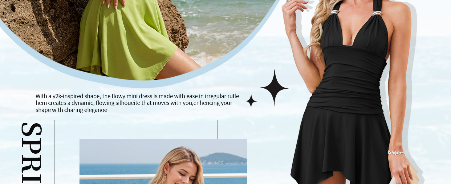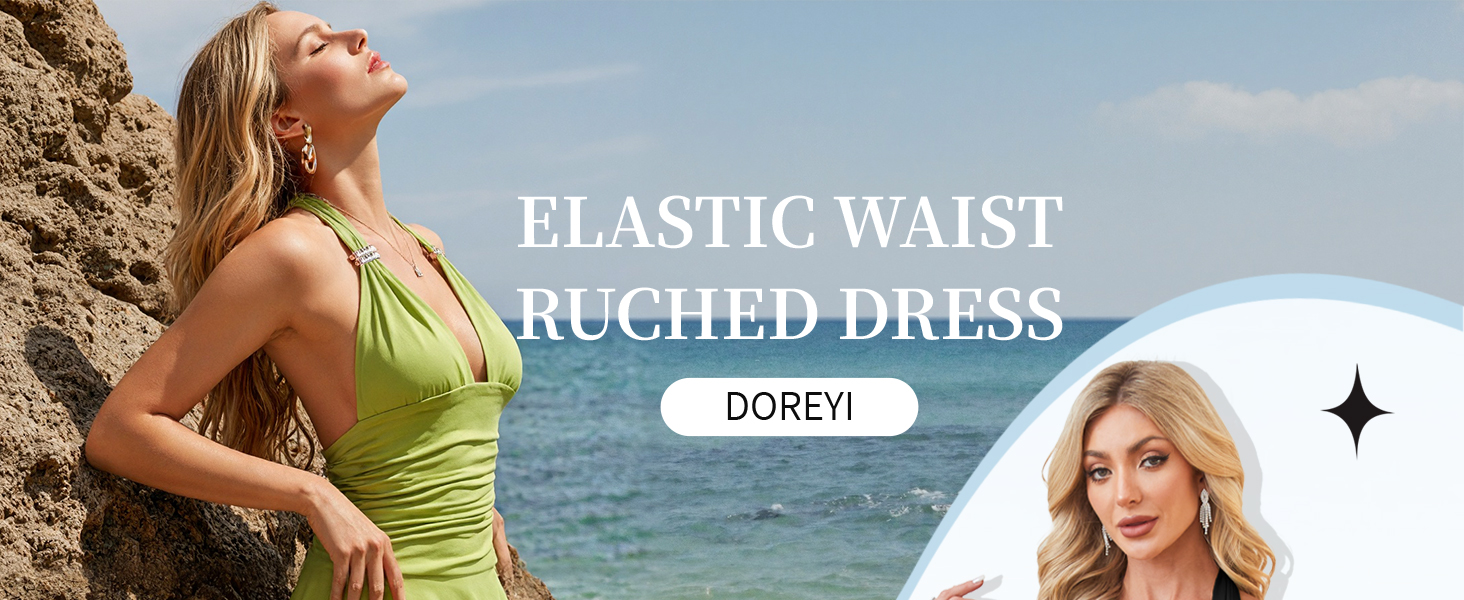 يتميز هذا الفستان المصنوع بشكل رائع بحلقة معدنية أنيقة وتفاصيل خصر مكشكشة أنيقة، مما يضفي لمسة من السحر الأنثوي والجاذبية الدقيقة. مصمم لإبراز منحنياتك، فهو يوفر مظهرًا مثيرًا ورشيقًا في أي مناسبة.