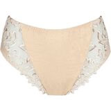 - These luxurious, high-waisted opaque briefs feature decorative embroidery on the legs.