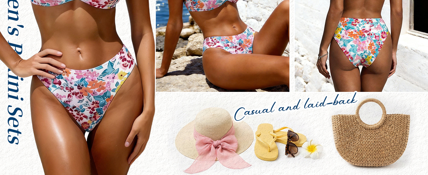 المواد: بدلة السباحة النسائية هذه مصنوعة من 82% بولي أميد + 18% إيلاستين، يتميز البيكيني المطبوع بنسيج ناعم وناعم ومسامي مع مرونة عالية. سريع الجفاف ومتين، مثالي للأنشطة الشاطئية والمائية.