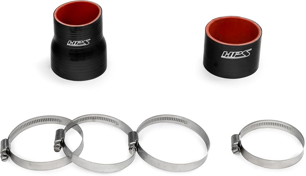 Includes HPS 4-ply reinforced silicone couplers and heavy duty 100% stainless steel embossed hose clamps. Bead rolled pipe ends minimize boost leaks from hoses popping off under high pressure conditions.