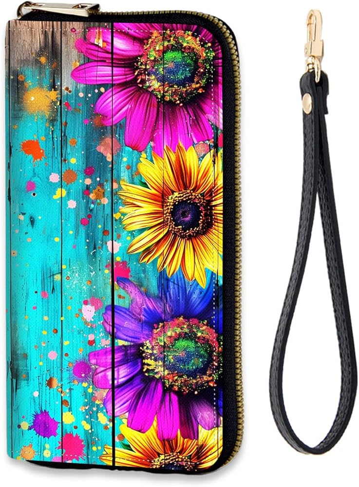 محفظة نسائية بسحاب حول RFID مع حزام معصم قابل للفصل، منظم حامل بطاقات الائتمان بسعة كبيرة للاستخدام اليومي، فراشة عباد الشمس in Kuwait