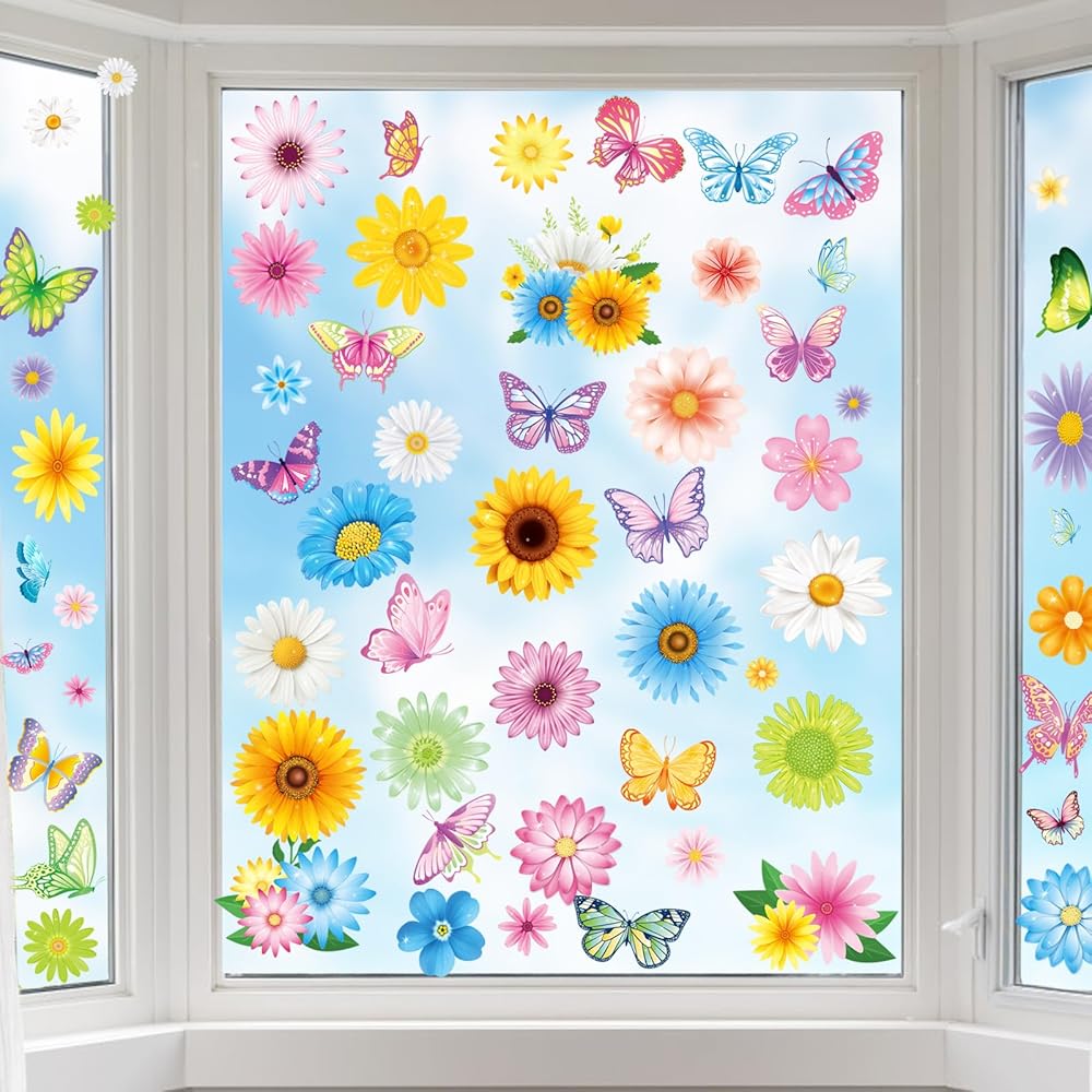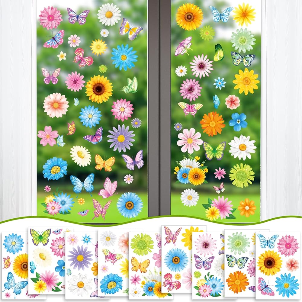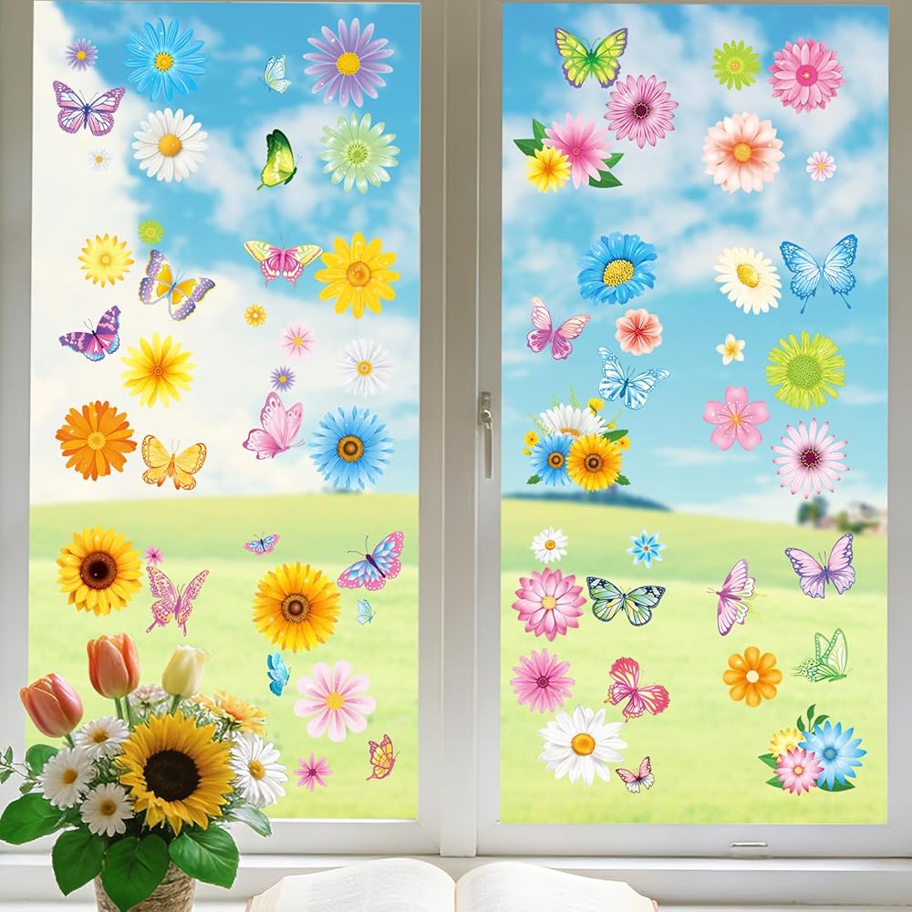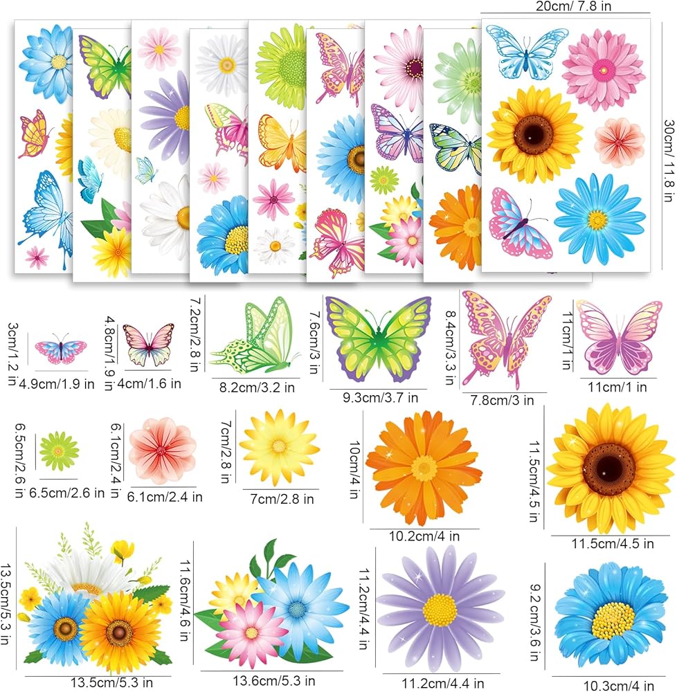 Transform your home into a vibrant spring oasis with our Spring Window Clings for Glass Windows. This set includes 9 sheets of beautifully designed static PVC window clings featuring an array of daisies, sunflowers, butterflies, and cherry blossoms.