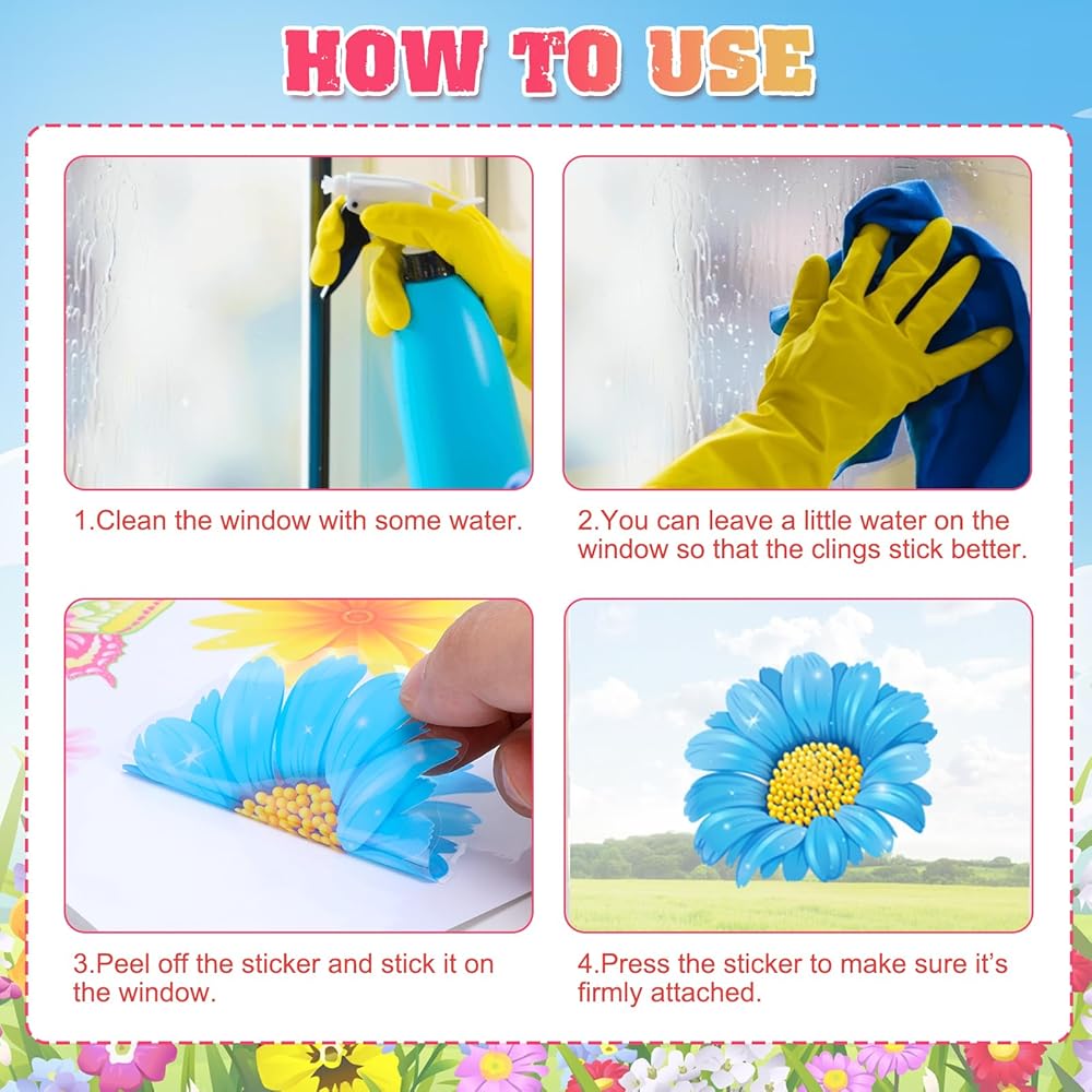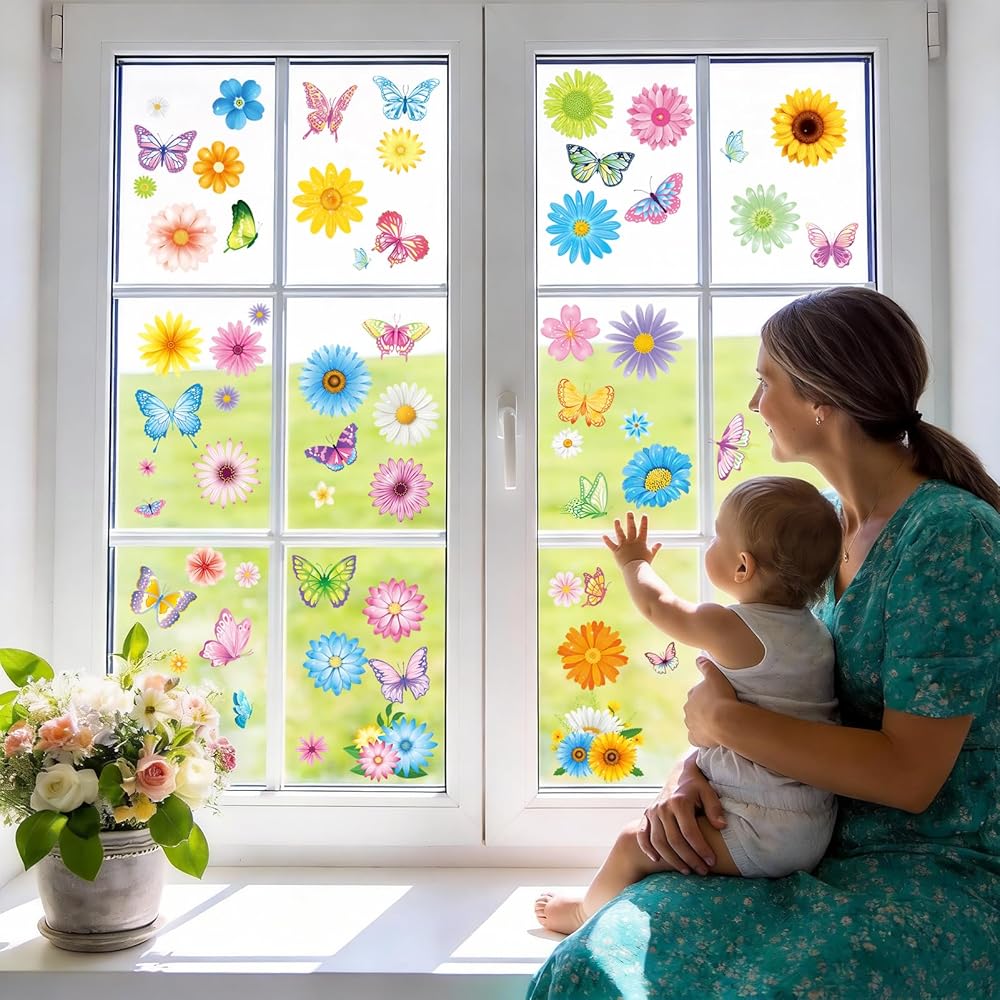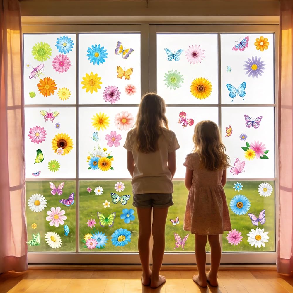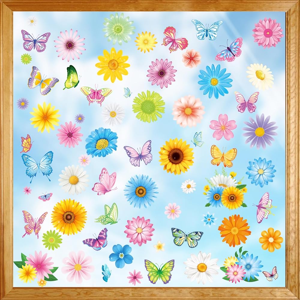 Transform your home into a vibrant spring oasis with our Spring Window Clings for Glass Windows. This set includes 9 sheets of beautifully designed static PVC window clings featuring an array of daisies, sunflowers, butterflies, and cherry blossoms.