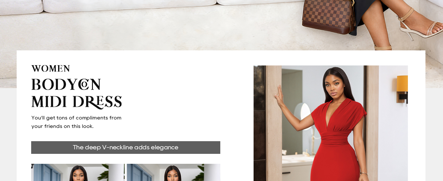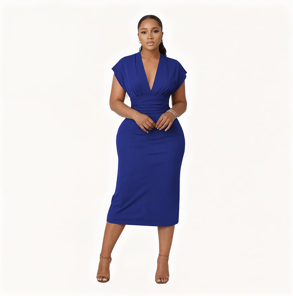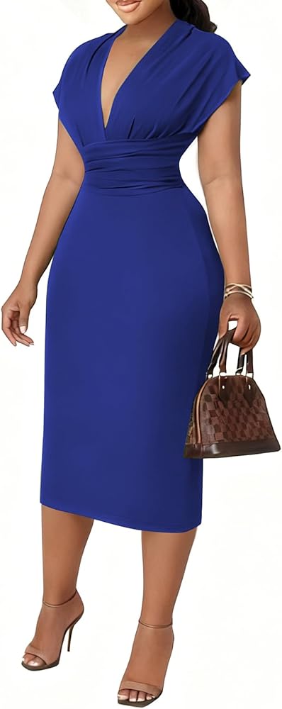 تفاصيل صورة ظلية جذابة: يضيف خط العنق العميق على شكل حرف V الأناقة، في حين أن تصميم الخصر المرتفع المكشكش يحيط بجذعك لتعزيز شكلك الطبيعي. الأكمام القصيرة والطول المتوسط يوازن بين الجاذبية والرقي - وهو مثالي لفستان ضيق يناسب مثل القفازات. سوف تحصل على الكثير من الثناء من أصدقائك على هذا المظهر.