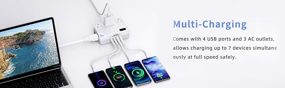 • مصمم للسفر -- 2 منافذ USB 2 من النوع C و3 منافذ تيار متردد، يمكن شحن ما يصل إلى 7 أجهزة في نفس الوقت، حجم صغير (4.5 × 3.1 × 1.7 بوصة)، يناسب أمتعتك بسهولة.