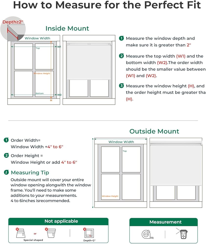 【دليل اختيار المقاسات】يرجى ملاحظة أن عرض الطلب لا يساوي عرض القماش. قم بقياس عرض النافذة W وفقًا لـ "مخطط كيفية القياس"؛ عرض الطلب = W. (إذا كانت مجموعة الرسوم البيانية توفر أيضًا "مخطط عرض الطلب الموصى به"، فقم أولاً بقياس عرض النافذة W، ثم استخدم W في "مخطط عرض الطلب الموصى به" لتحديد عرض الطلب)