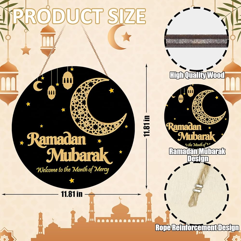 إكليل رمضان المبارك: يبلغ مقاس إكليل باب رمضان 11.8 × 11.8 بوصة وهو مصنوع من خشب عالي الجودة. إكليل رمضان هذا مثالي كديكور لباب رمضان للاستخدام طويل الأمد