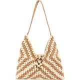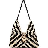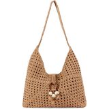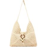 The relaxed hobo silhouette and woven yarn construction offer a casual yet sophisticated look, while the decorative wooden beads add a distinctive ethnic flair.