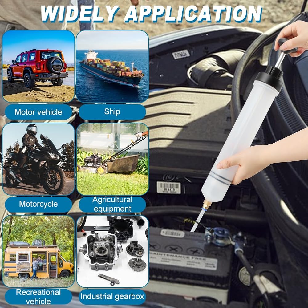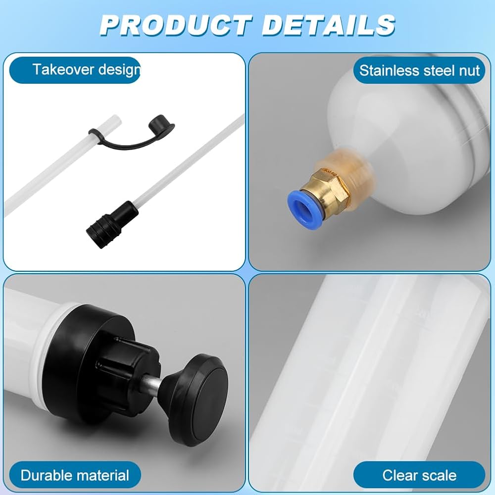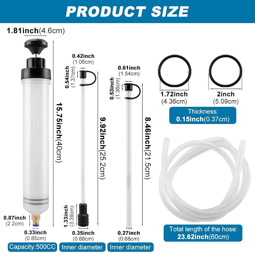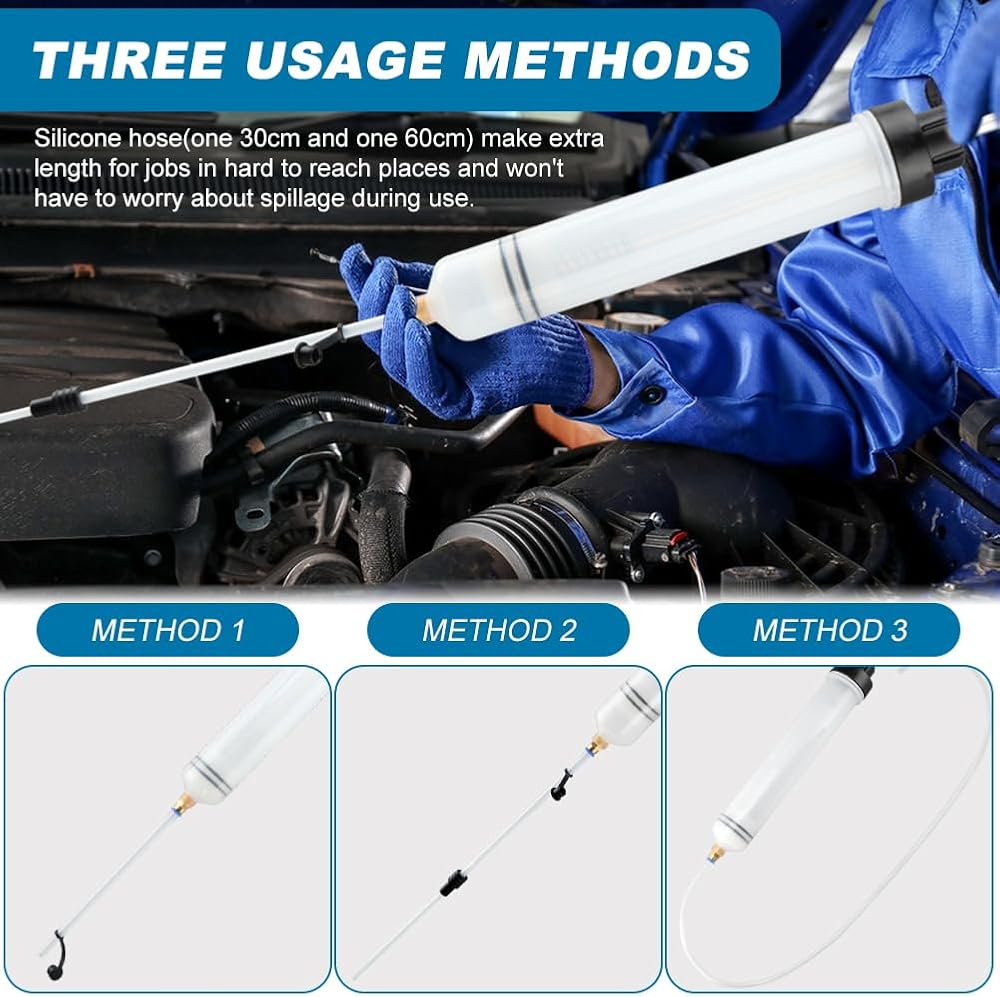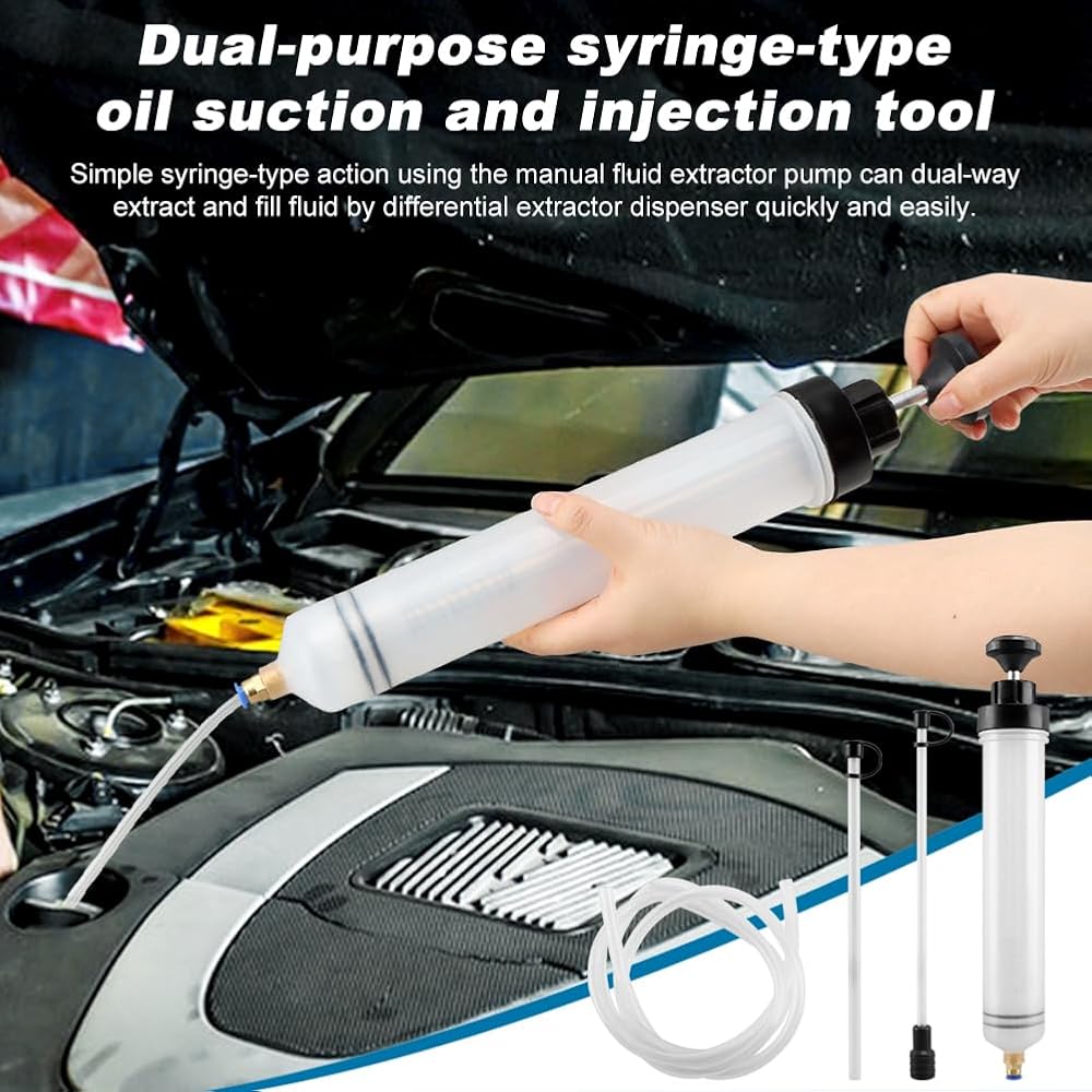 • 6-inch rubber hose for efficient suction of fuel and brake fluid
