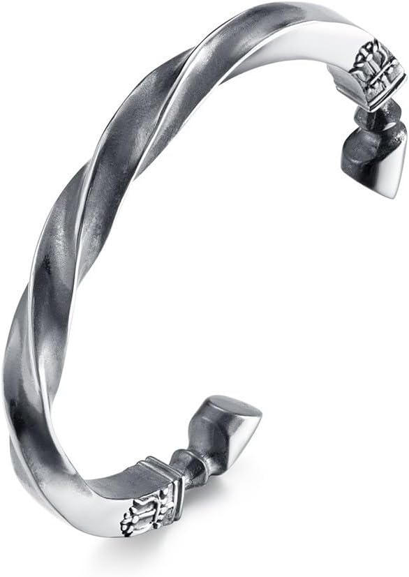 Twisted Solid Structure — Thick twisted band gives this heavy men's cuff bracelet strong visual weight and a balanced wrist feel.