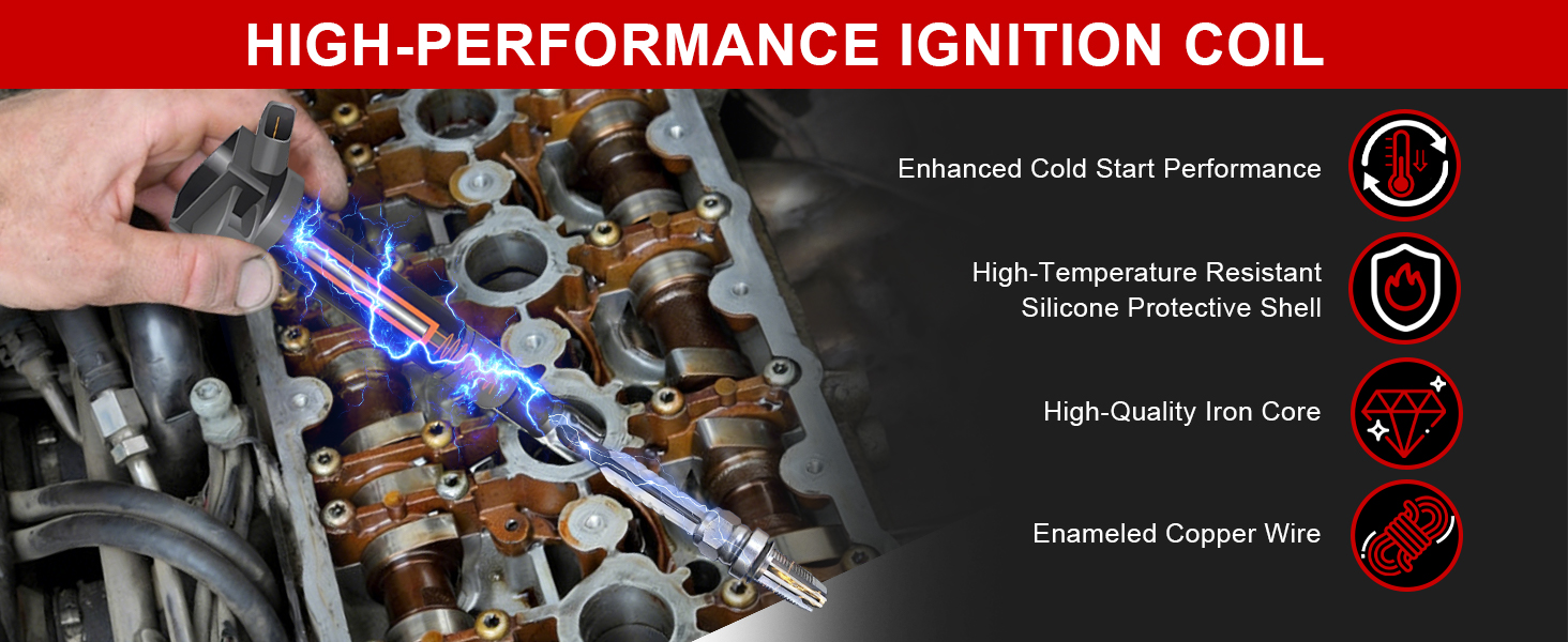 ميزات حزم الملفات OE: كل ملف إشعال في مجموعة شمعات الإشعال ومجموعة حزم الملفات مع قلب من الفولاذ السيليكون عالي الجودة، وسلك مطلي بالمينا مستورد من ألمانيا وطلاء من راتنجات الإيبوكسي. تضمن حزمة الملفات الممتازة هذه مقاومة ممتازة للحرارة والتوصيل الكهربائي، وتجنب الاحتراق أو عدم استقرار الجهد الكهربي، والقضاء بشكل فعال على اختلال المحرك أو التباطؤ الخشن الناتج عن الملفات القديمة، مما يطيل عمر خدمة ملف الإشعال البديل للسيارات بنسبة تصل إلى 50% من الملفات العادية.