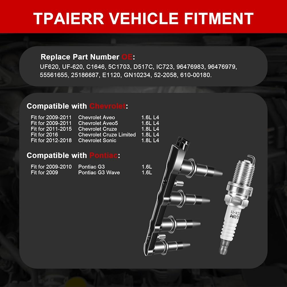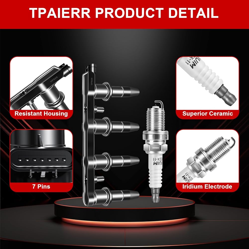 حول TAPIERR: باعتبارنا مصنعًا محترفًا لقطع غيار السيارات الأصلية يتمتع بخبرة 30 عامًا، فإننا متخصصون في تصنيع ملفات الإشعال وشمعات الإشعال ومجموعة كاملة من مكونات السيارات الأصلية الأخرى. مجهزة بخطوط إنتاج داخلية وفريق بحث وتطوير ذو خبرة، نحن نضمن التوافق الصارم مع معايير OE والجودة المتسقة لتلبية متطلبات ما بعد البيع المتنوعة. 1-ضمان لمدة عام على مجموعة ملفات الإشعال وشمعات الإشعال. تتضمن العبوة: حزم ملف الإشعال ×4، شمعات إشعال إيريديوم مزدوجة ×4.