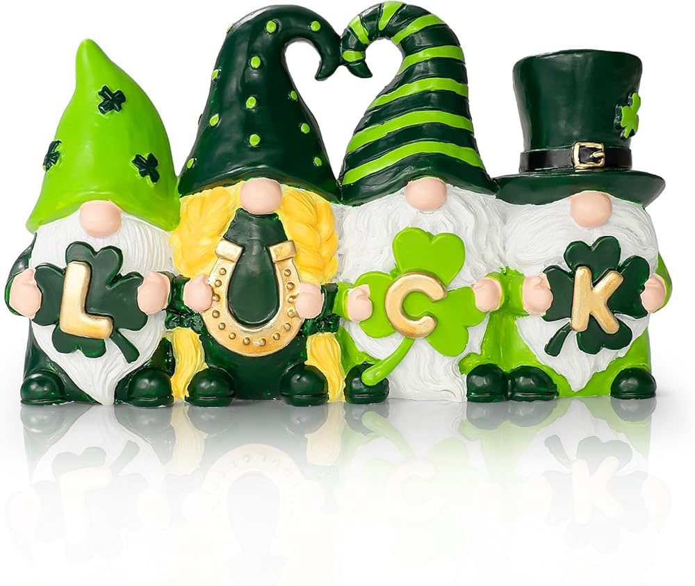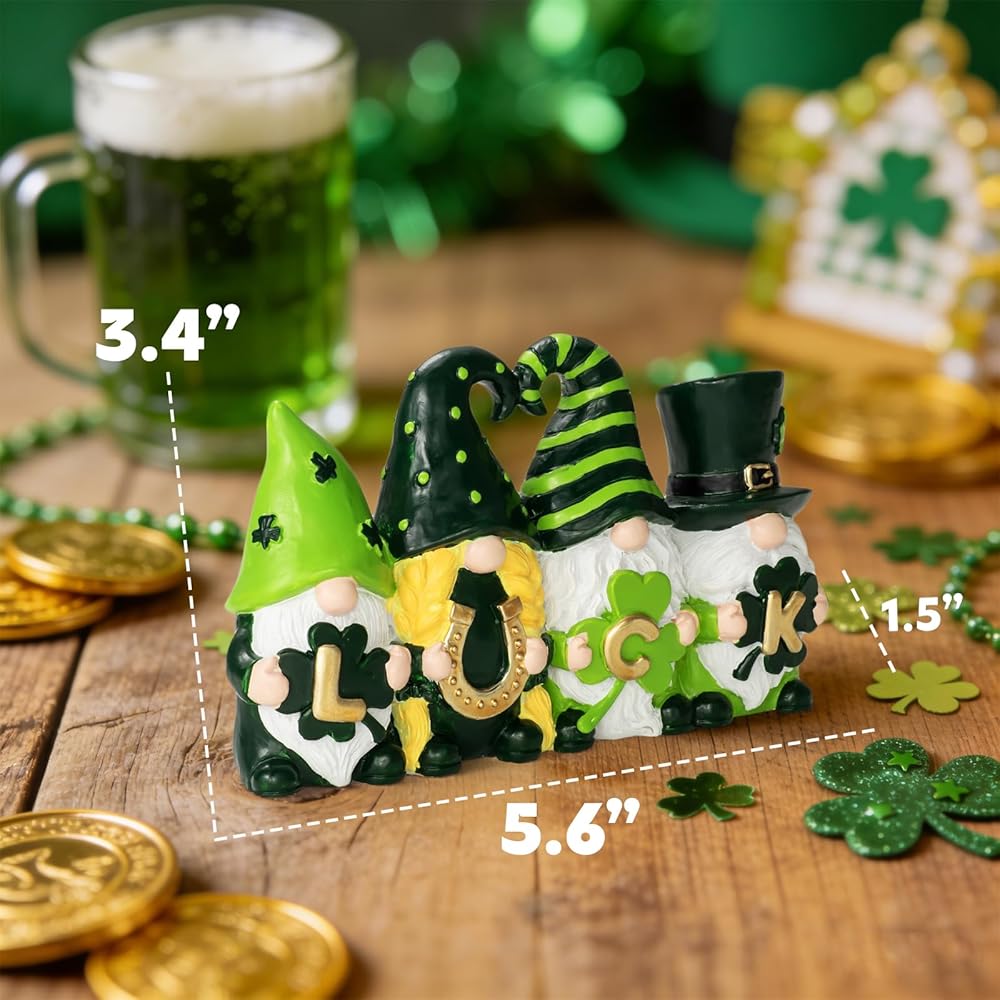 تمثال قابل للتجميع: تماثيل جنوم مبهجة ذات طابع أيرلندي تضيف لمسة من الحظ والروح الاحتفالية إلى مجموعة ديكور العطلات الخاصة بك عامًا بعد عام، التصميم المدمج يجعل من السهل وضعها على رف أو رف أو طاولة