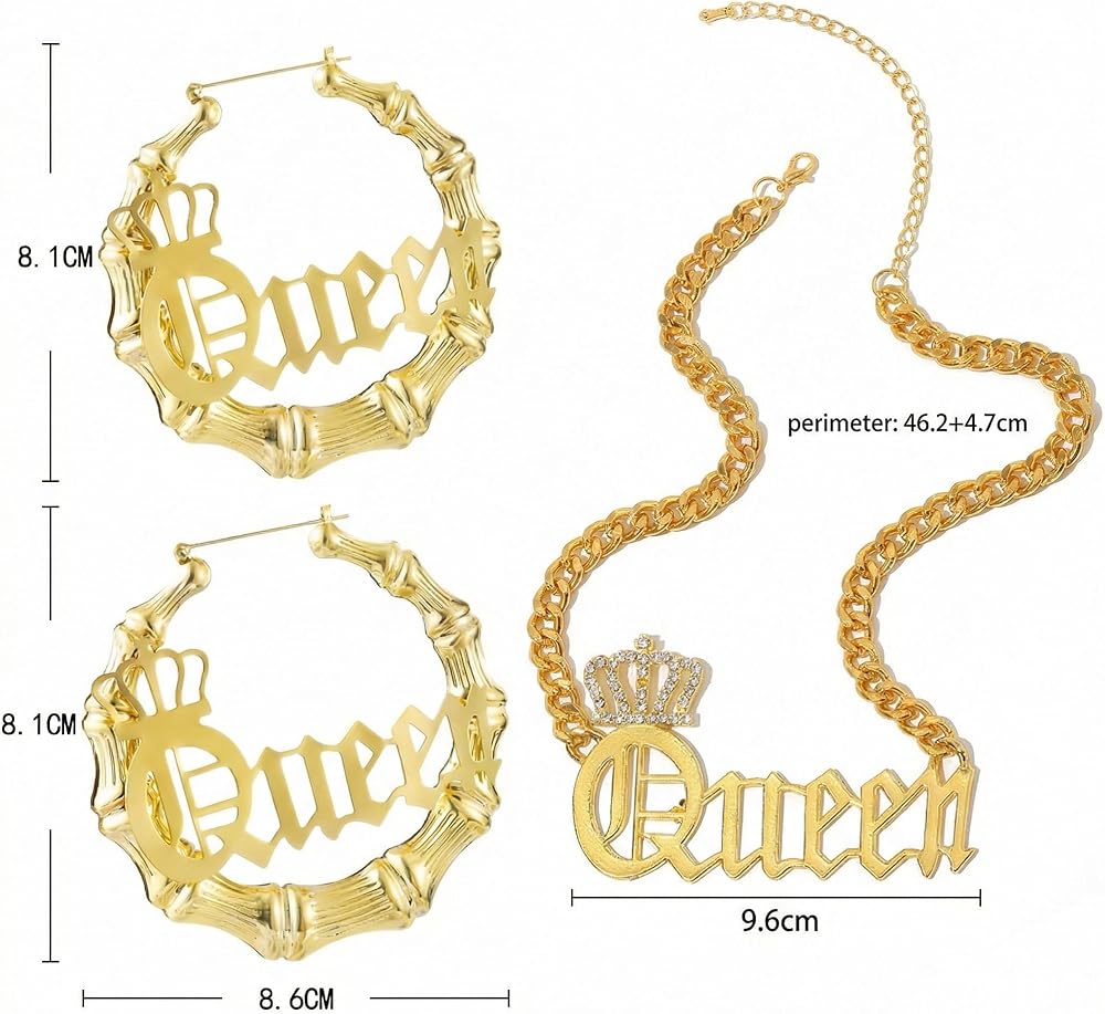 • تتميز هذه المجموعة بقلادة الملكة الجريئة وأقراط كبيرة من الخيزران، وهي مثالية للنساء اللاتي يرغبن في التعبير عن شخصيتهن المتحررة بطريقة فريدة وأنيقة.