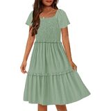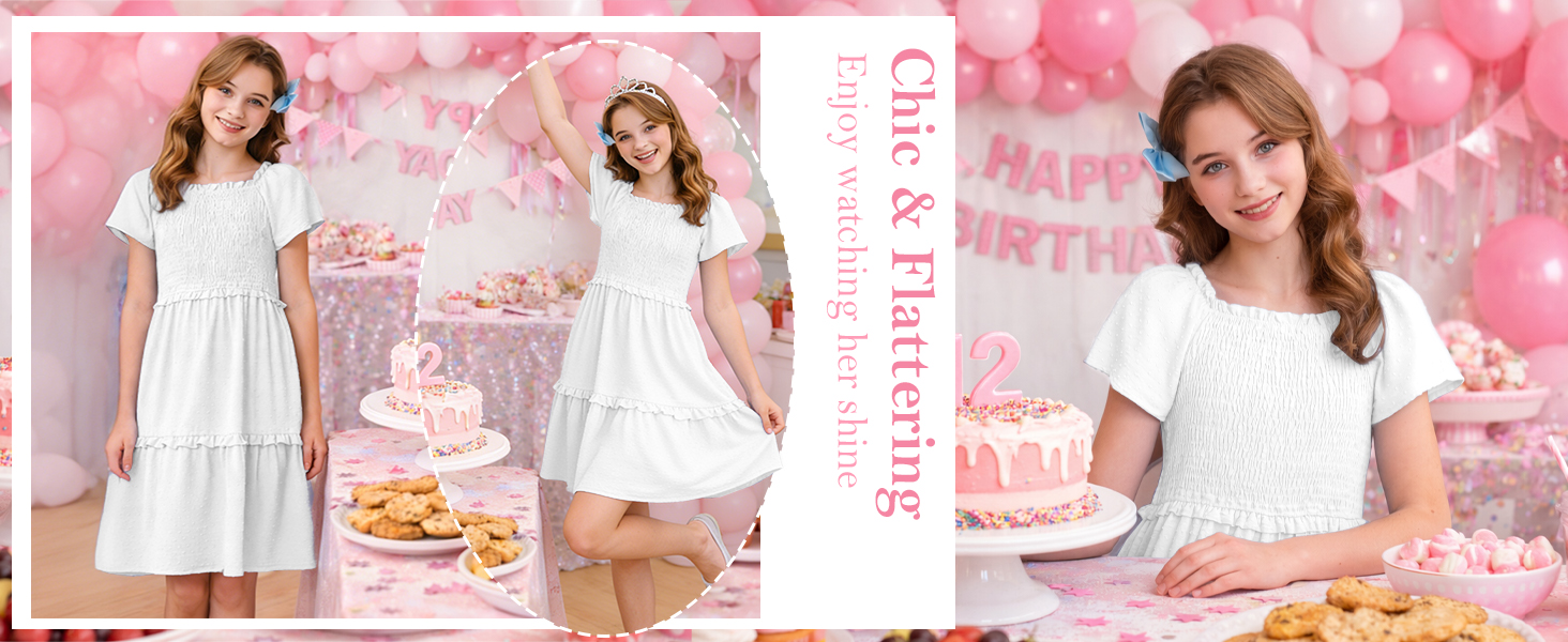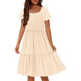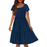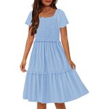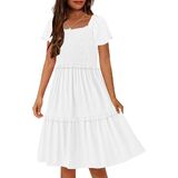 فستان بناتي بأكمام قصيرة مصنوع من قماش ناعم، بشرة لطيفة، مع بطانة، لا يسبب الحكة، مريح ومسامي، يبقي ابنتك منتعشة ومرتاحة خلال أيام الصيف الحارة. مثالي لفستان الفتيات الصغيرات/فستان الفتيات المراهقات/فستان الفتيات المراهقات