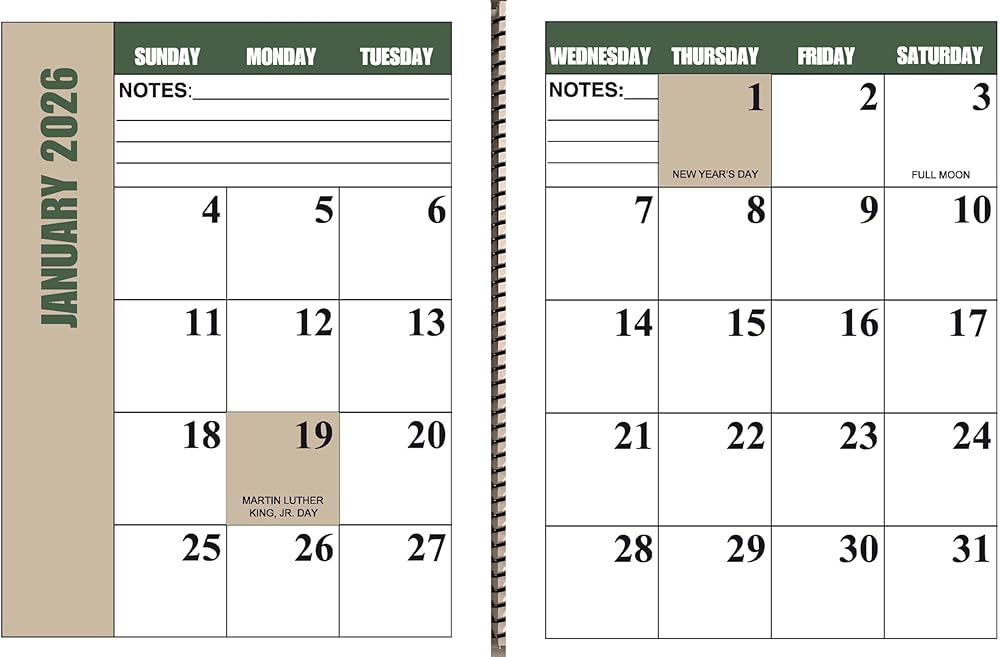 HOLIDAYS & SEASONAL DETAILS INCLUDED – National holidays are pre-printed, with seasonal changes and full moons listed to help you plan with the rhythms of the year.