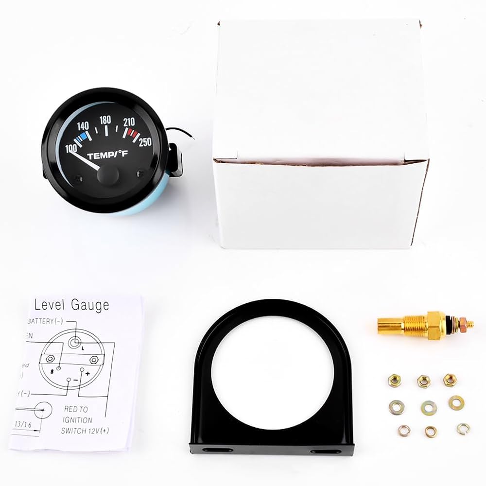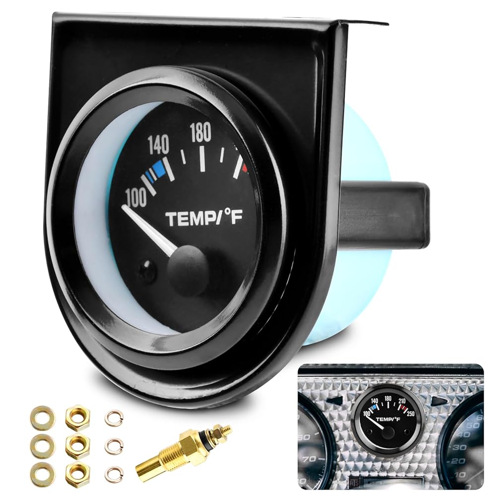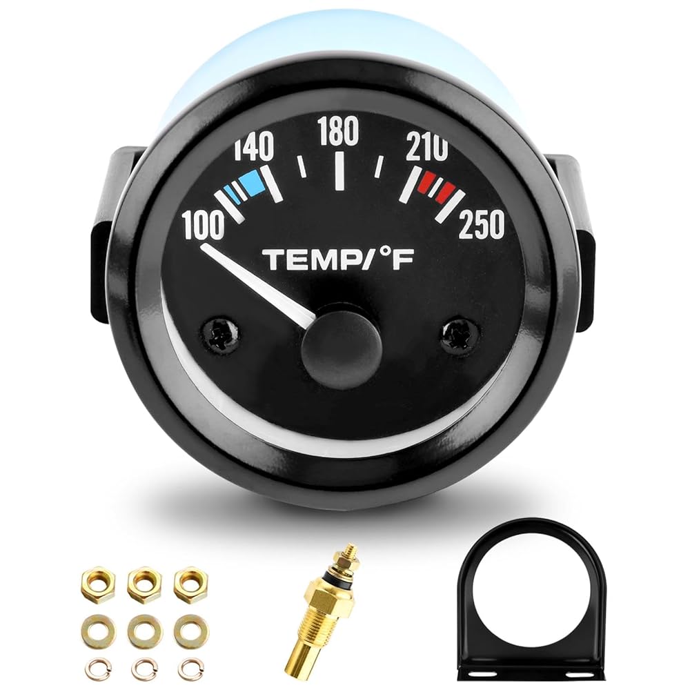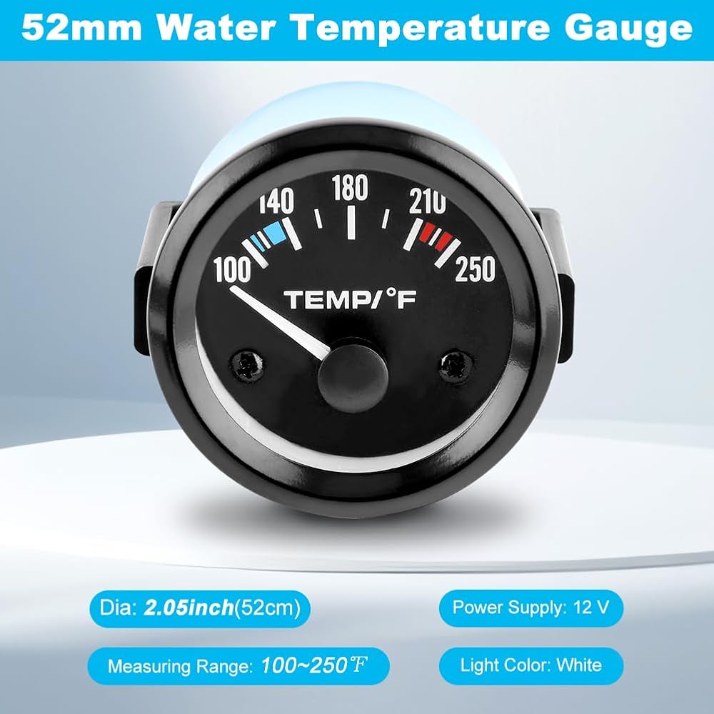 مقياس درجة حرارة الماء 2 بوصة 52 مم، 100-250 درجة فهرنهايت، مجموعة أدوات قياس درجة حرارة الماء، ملحقات السيارة، مقياس درجة حرارة الماء مع إضاءة خلفية LED للقوارب البحرية، السفينة، السيارة، الشاحنة، السيارة (اللون: أسود)