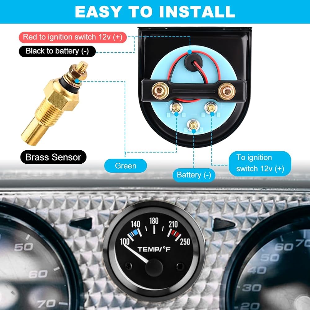 [الوظيفة الرئيسية] يسمح لك مقياس درجة حرارة الماء بمراقبة درجة حرارة سائل تبريد محرك السيارة لضمان عدم ارتفاع درجة حرارته، مما قد يسبب تلفًا خطيرًا للمحرك.
