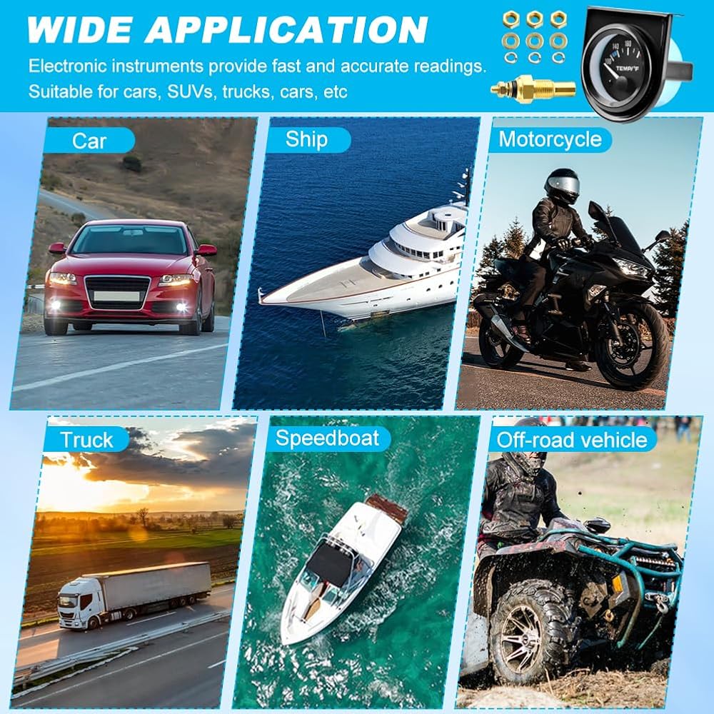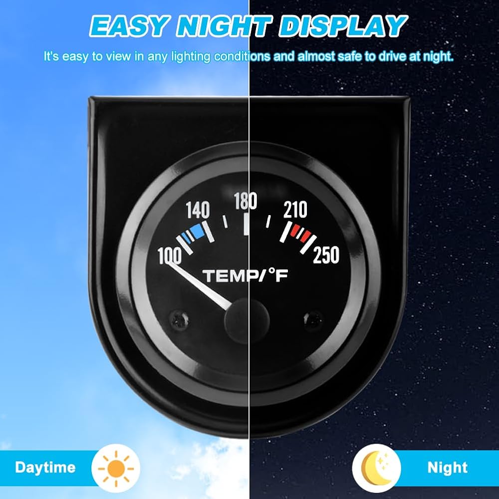【مع إضاءة خلفية LED】يمكن رؤية درجة حرارة الماء بوضوح تحت الضوء الأبيض، ويمكن للأرقام والمؤشرات أن تعرض درجة حرارة الماء بوضوح. يمكن رؤيتها بسهولة من جميع الزوايا تحت أي ظروف إضاءة، مما يجعلها عملية وآمنة للقيادة ليلاً.
