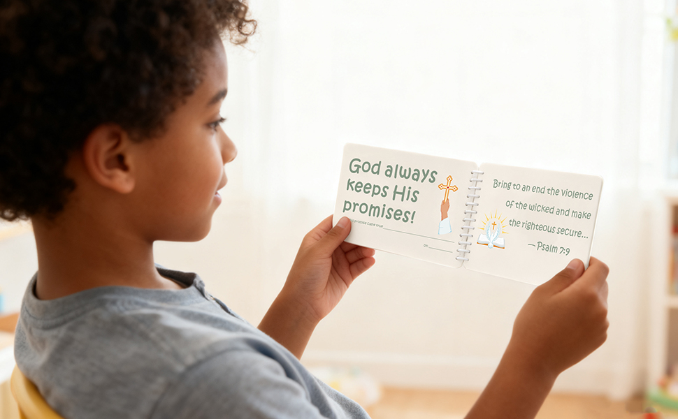 7 وعود الله مع آيات الكتاب المقدس NIV: يحتوي هذا الكتاب المصور بشكل جميل على 7 وعود الله الصادقة المقترنة بآيات الكتاب المقدس NIV الواضحة. يساعد المحتوى البسيط والملائم للأطفال على تقديم الإيمان بطريقة سهلة الفهم، مما يضع أساسًا لطيفًا للتنوير الروحي