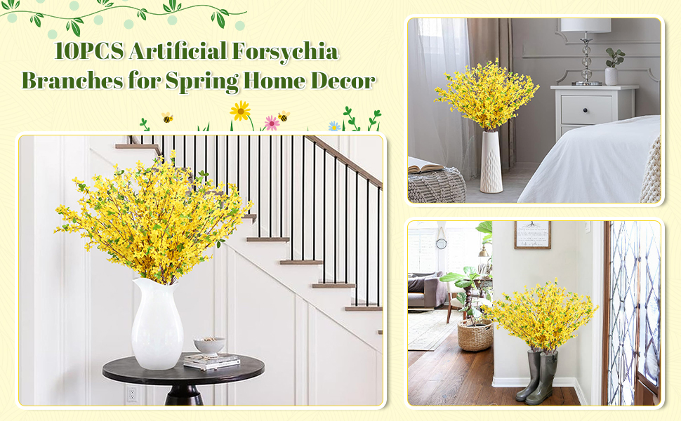 حجم المنتج: يبلغ طول زهور الربيع المزيفة باللون الأصفر 34.65 بوصة/88 سم. تُباع فروع فورسيثيا الصناعية في مجموعات، مجموعة مكونة من 10 سيقان. يحتوي كل سيقان على زهور الأوركيد السخية
